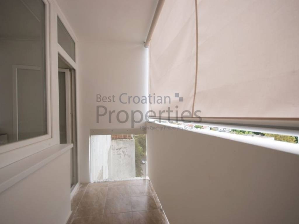 Stan se sastoji od ulaznog prostora s manjom kuhinjom, sobe, velike lođe i kupaonice.