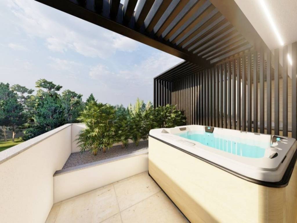 Otok Krk, grad Krk, prodaja ekskluzivnog troetažnog apartmana površine 100 m2, s vrtom površine 12 m2, na atraktivnoj lokaciji, 300 m od plaže! Apartman se sastoji od prizemlja sa dnevnom sobom, kuhinjom, blagovaonom, toaletom, stubištem, terasom i natkrivenom terasom površine 10 m2, prvog kata sa dvije spavaće sobe, kupaonicom, hodnikom i balkonom te drugog kata sa galerijom površine 19 m2 i terasom. Visoka kvaliteta gradnje, vrhunska keramika i sanitarije, PVC stolarija sa roletama na elektropogon, podno grijanje, klimatizacija, vanjsko i garažno parkirno mjesto.