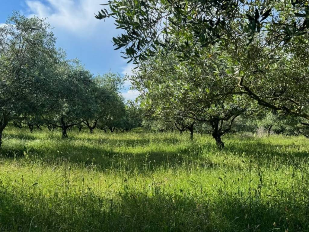 Otok Krk, grad Krk, šire područje, prodaja poljoprivrednog zemljišta - maslinika površine 24.399 m2 s stambenim objektom od 64 m2 s urednom dokumentacijom i pogledom na more. Maslinik krasi 500 stabala maslina starosti preko 30 godina. Pristupni put.