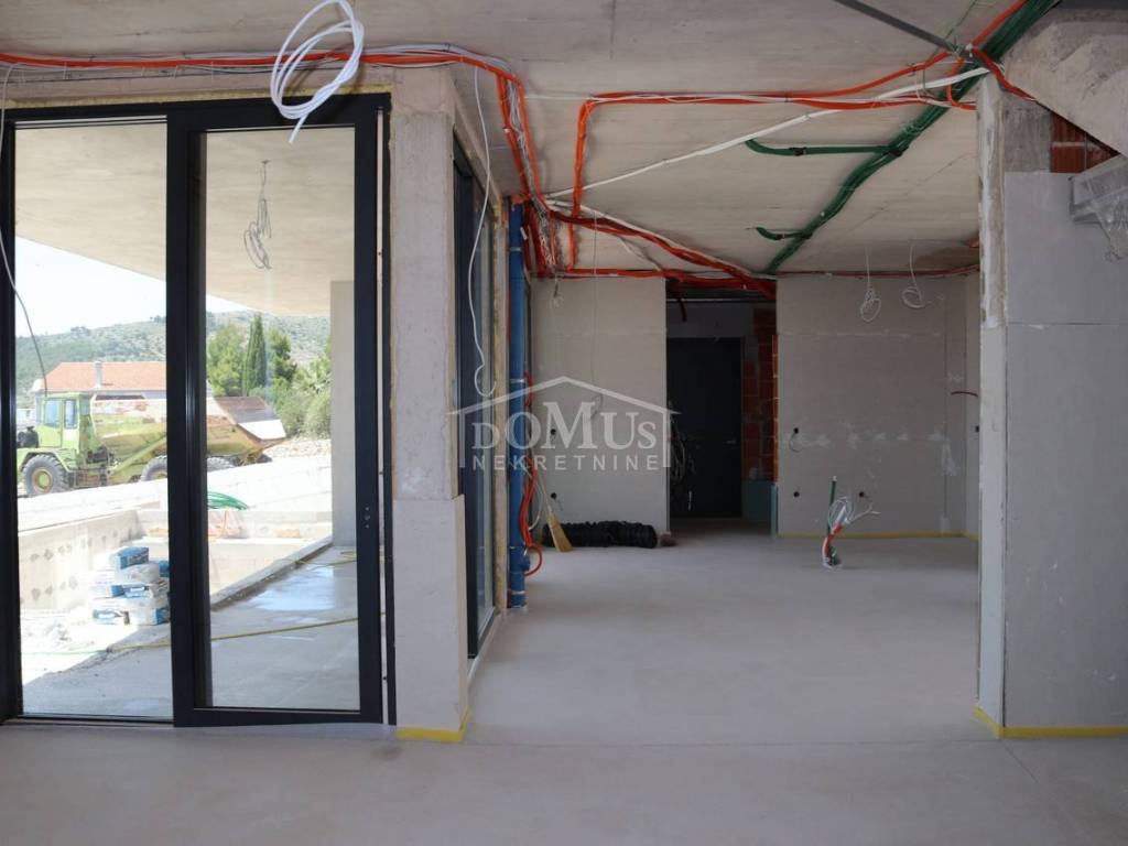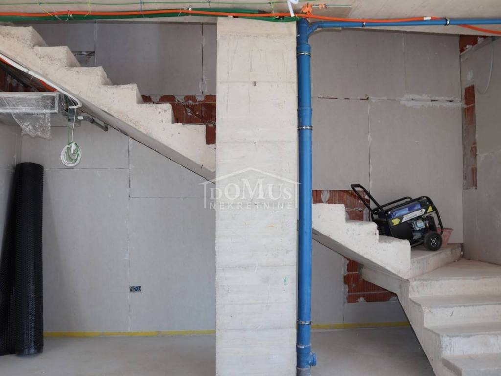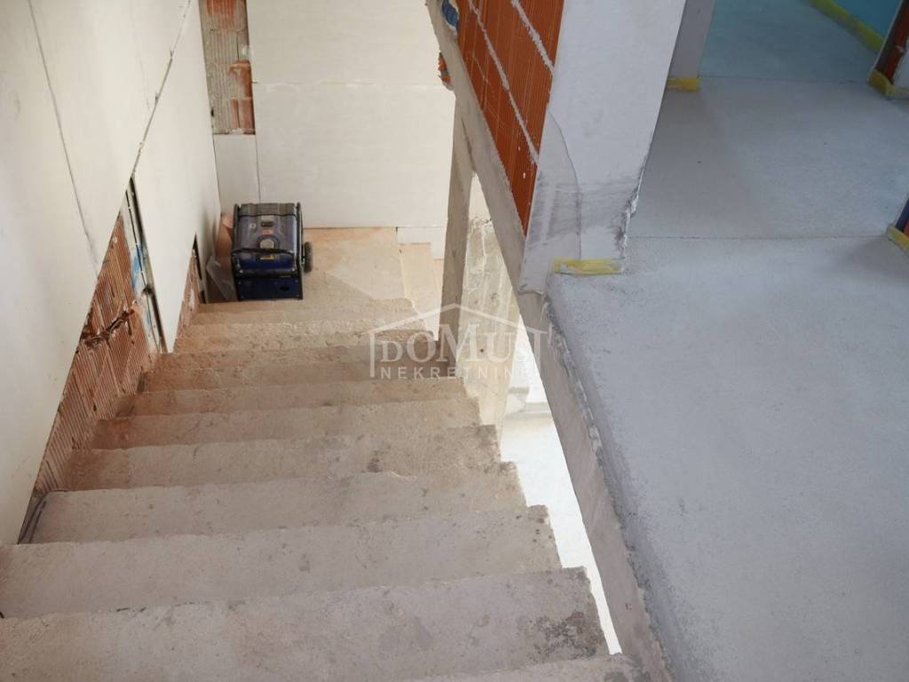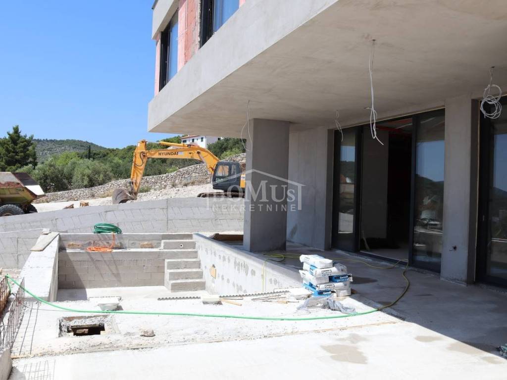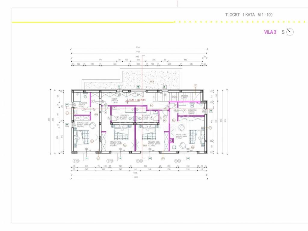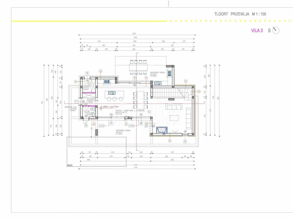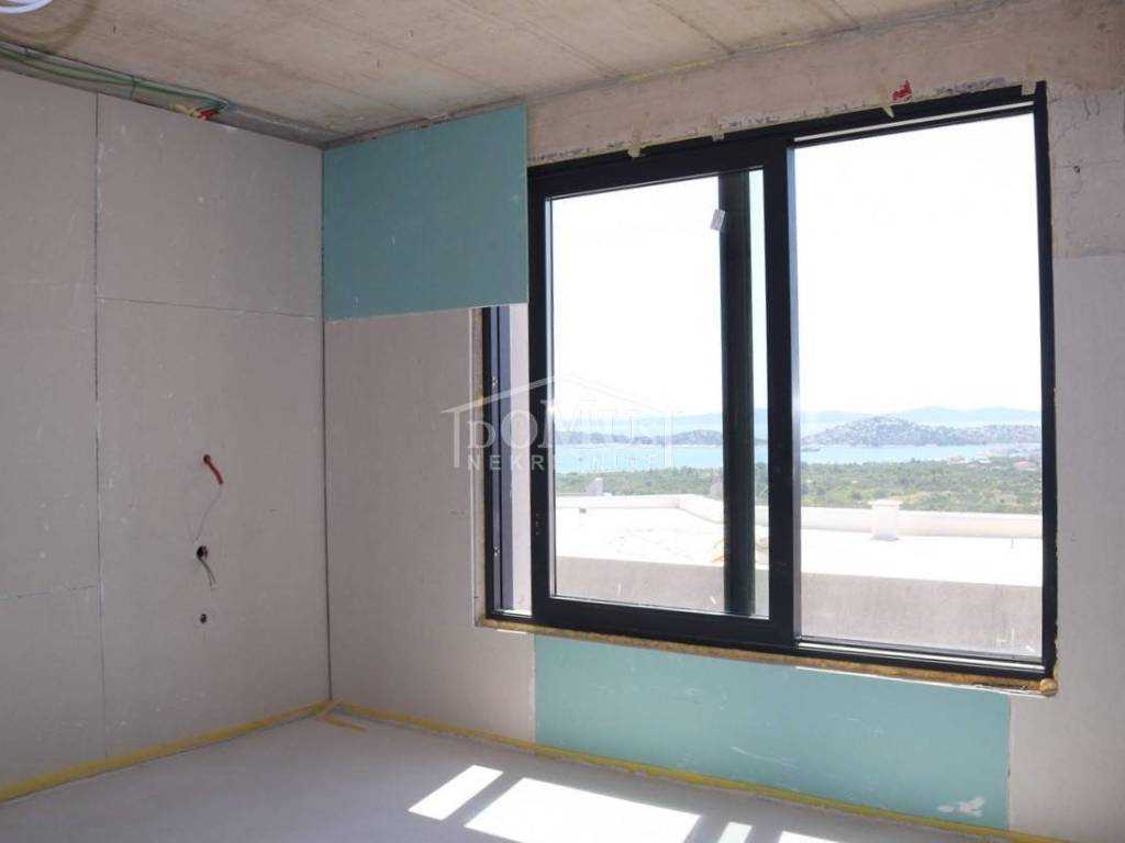 The villa that is currently in construction in Vodice stands out for its unique characteristics. Located on a plot of 613 m2 on a hill, the villa offers a spectacular panoramic view of the sea and the Vodice archipelago. Surrounded by nature and far from the hustle and bustle of the city, the villa offers its residents a peaceful and relaxing environment to escape from everyday stress and enjoy privacy. Designed with modern architecture, the villa is a symbol of contemporary style and elegance. Clean lines, spacious terraces and carefully selected materials create an impressive aesthetic impression. With its two-story structure, the villa has 215.01 usable area and offers plenty of space for comfortable living. The spacious outdoor area includes a 35 m2 swimming pool surrounded by a sun deck, creating an ideal place to relax and socialize outdoors. The spacious interior of the villa includes the main entrance, hallway, storage room, dining room, living room, kitchen, which leads to two terraces, guest toilet. On the first floor there are four spacious bedrooms, each with its own bathroom, and a laundry room. Although located in a quiet environment, the villa is only 700 meters from the sea/beach and 1000 meters from the city center, providing a balance between privacy and ease of access to all necessary amenities.