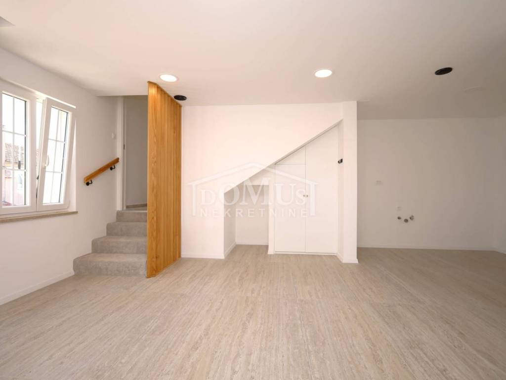 Vodice, in an attractive location, in the immediate vicinity of the center and only 200m from the Blue beach, a comfortable two-story, 3-room apartment with a total of 92.82m2 of usable area. The apartment is located on the 2nd floor and attic of a smaller residential building. It consists of an entrance area / terrace of 8.21 m2 with a view of the sea, a kitchen with a dining room, a separate living room, two bathrooms, a bedroom and an internal staircase and two more simple / bedrooms in the attic. The apartment is air-conditioned. It has 1 parking space. The apartment is located only 200m from the Blue beach, and 450m from the center and all essential facilities for life.