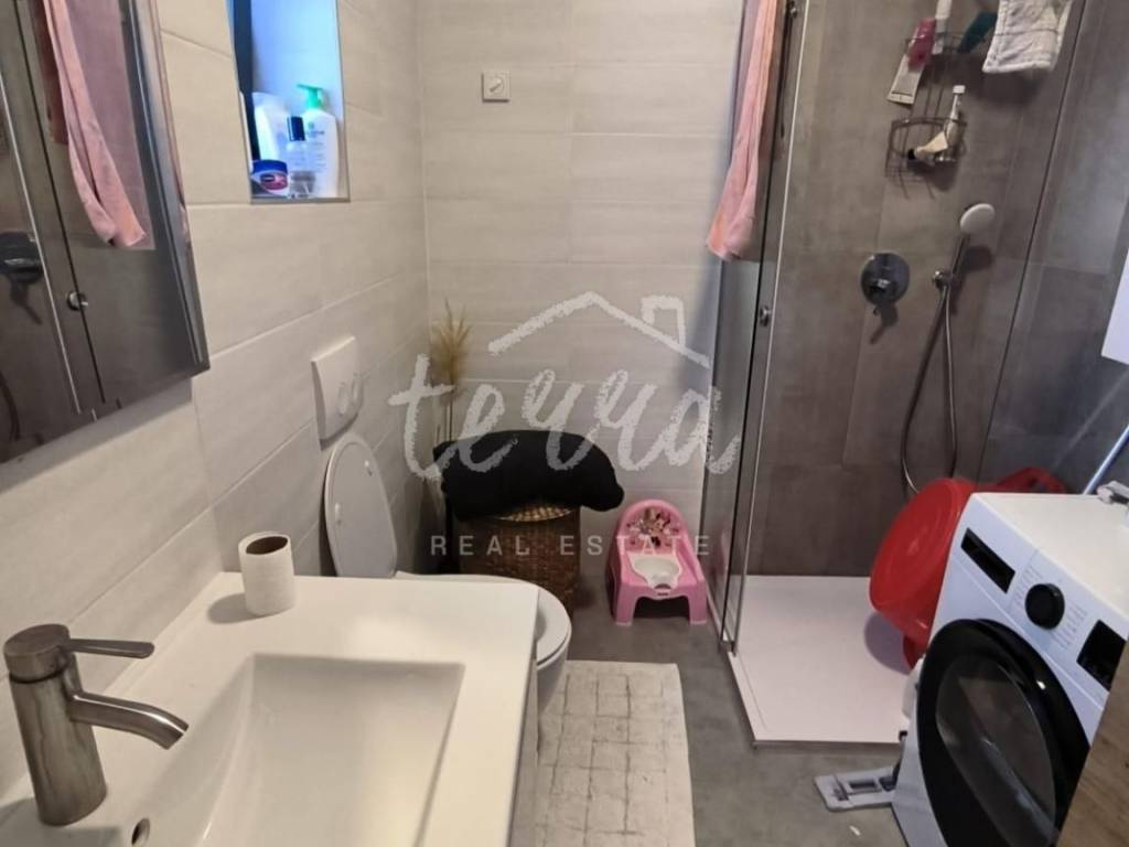 Internal stairs lead to the first floor where there are 2 smaller bedrooms and a master bedroom with a walk-in closet and a bathroom. From the upper floor, there is an exit to the back of the house where there is another terrace, and an additional garden facility designed as a tavern for socializing and barbecuing, and a small toilet that is not finished. In front of it is another terrace where there is an automatic pool of 35m2, with a built-in jacuzzi and a system for swimming against the current.