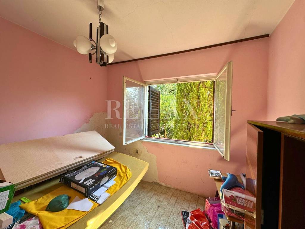 Na parceli se nalazi vikendica tlocrtne površine 70 m², koja se proteže kroz prizemlje i kat. Prizemlje obuhvaća kuhinju, kupaonicu i spremište, dok se na katu nalaze tri spavaće sobe, dnevni boravak i dodatna kupaonica. Objekt zahtijeva kompletnu renovaciju, što budućem vlasniku ostavlja slobodu da ga uredi prema vlastitim potrebama ili se odluči za potpuno novu gradnju.