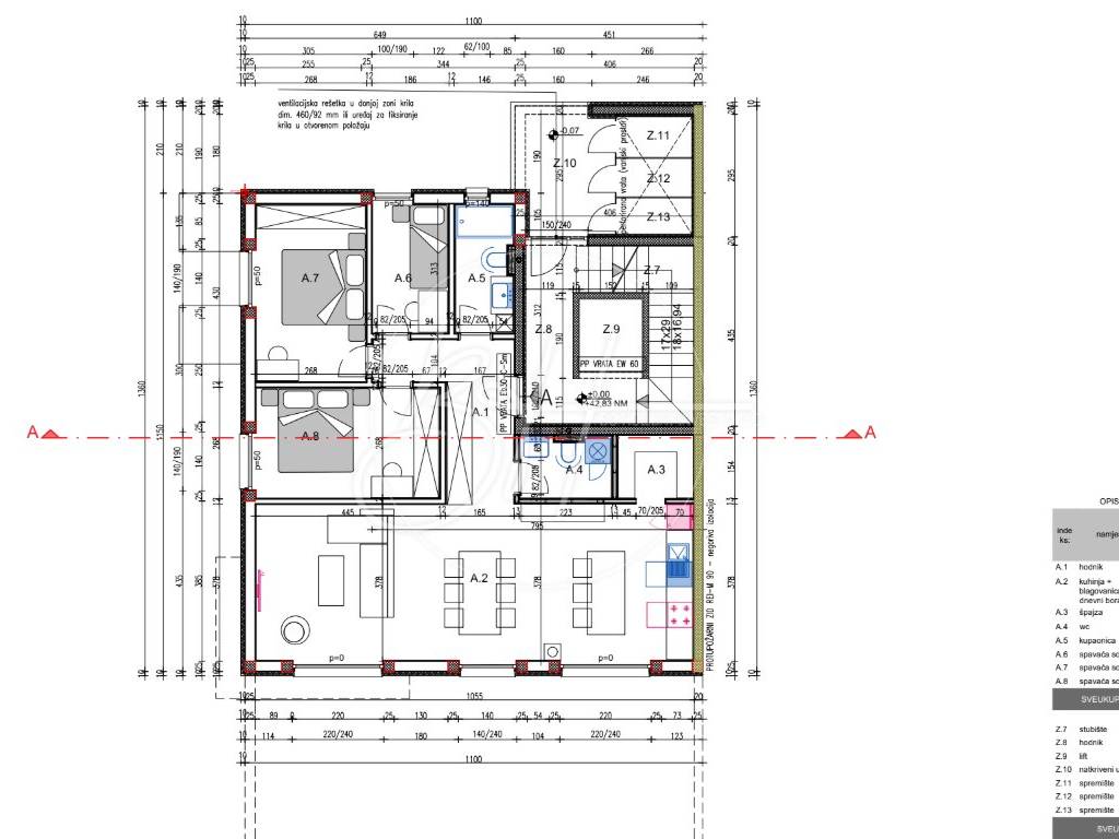Apartment A (1) – ground floor, area 86.21 m2, and consists of a hallway, kitchen with dining room and living room, three bedrooms, toilet, bathroom and storage room. The price includes two parking spaces in the underground garage. – 395,000.00 EUR