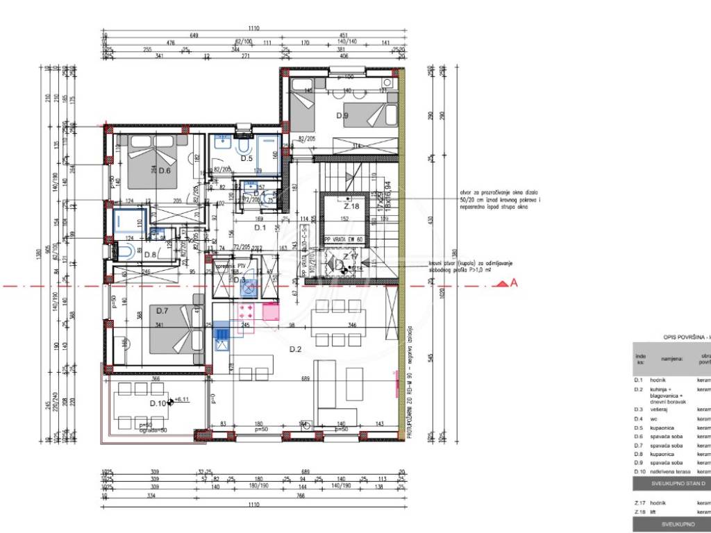 Apartment D (8) – second floor, area 95.74 m2, and consists of a hallway, kitchen with dining room and living room, three bedrooms, two bathrooms, laundry room, storage room and covered terrace. The price includes two parking spaces in the underground garage. – 398,000.00 EUR