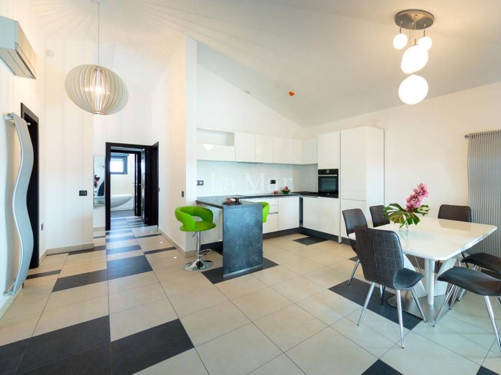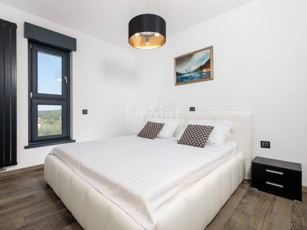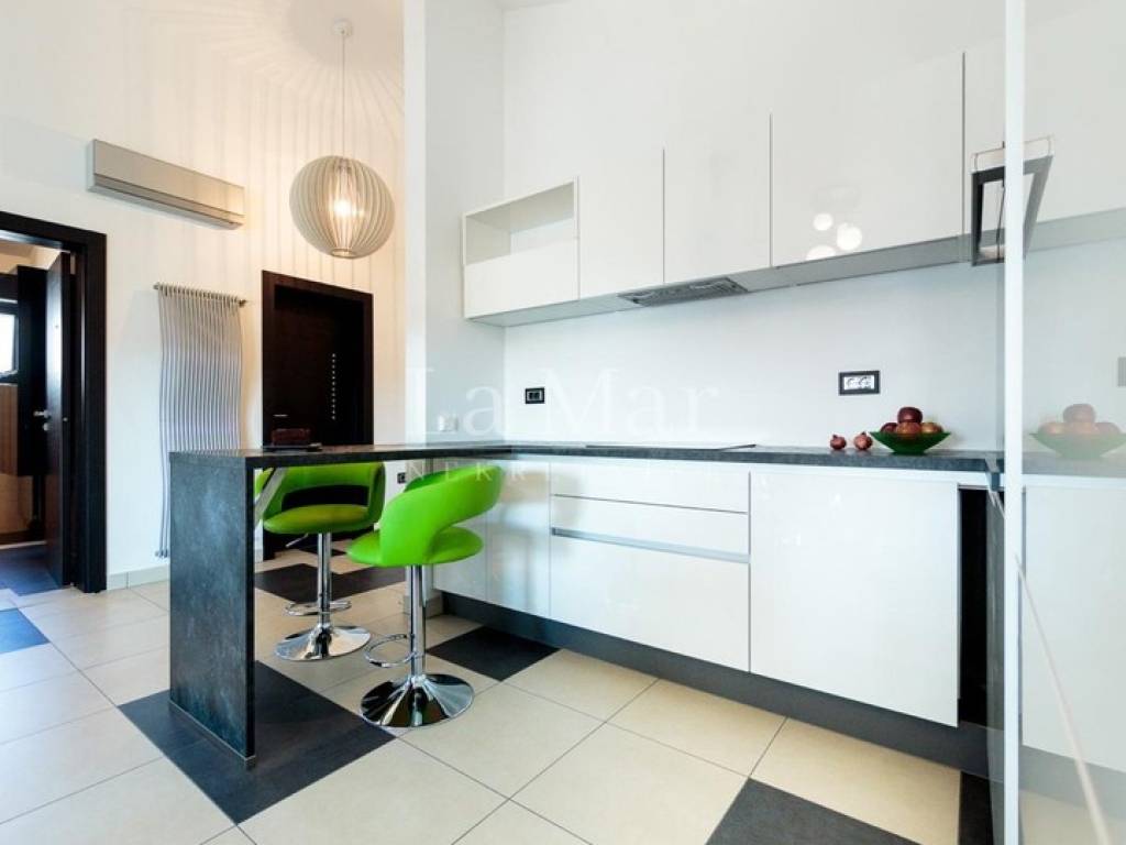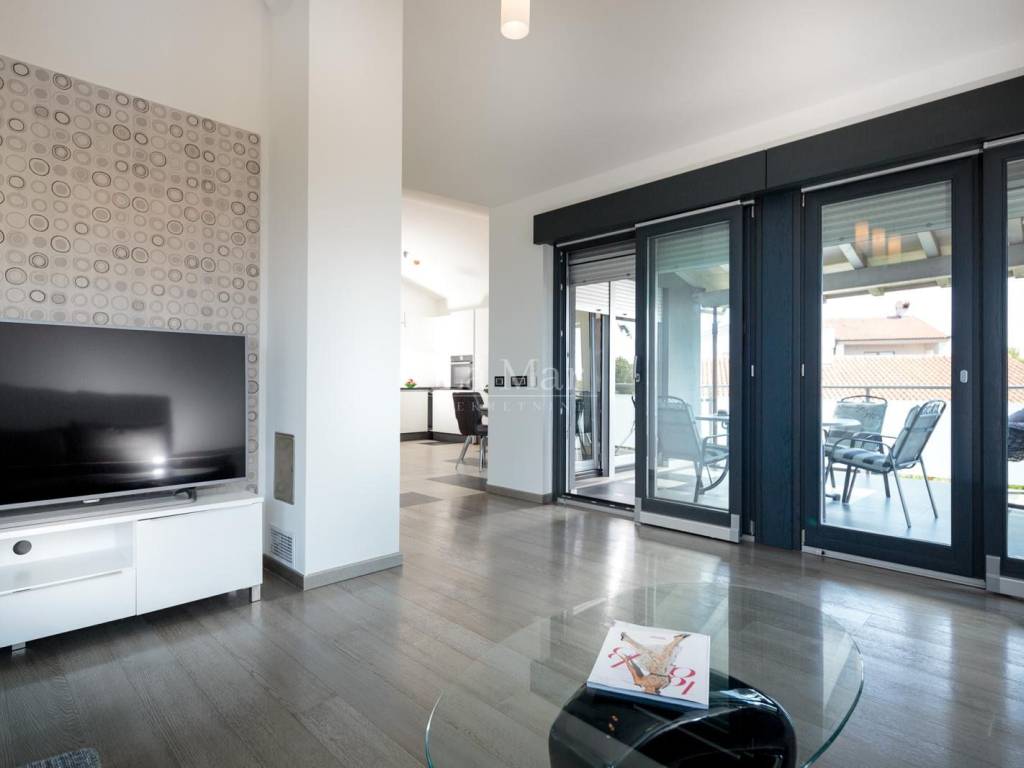 Moderno uređen i opremljen stan sa maksimalno iskorištenim prostorom pruža ugođaj za život. Stan ima veliku količinu prirodnog svijetla, kuhinja je potpuno opremljena a iz dnevnog boravka izlazi se na prostranu natkrivenu terasu gdje se nalazi roštilj. U dvije velike prostrane kupaonice nalazi se vrhunska talijanska keramika. Stolarija je aluminijska.