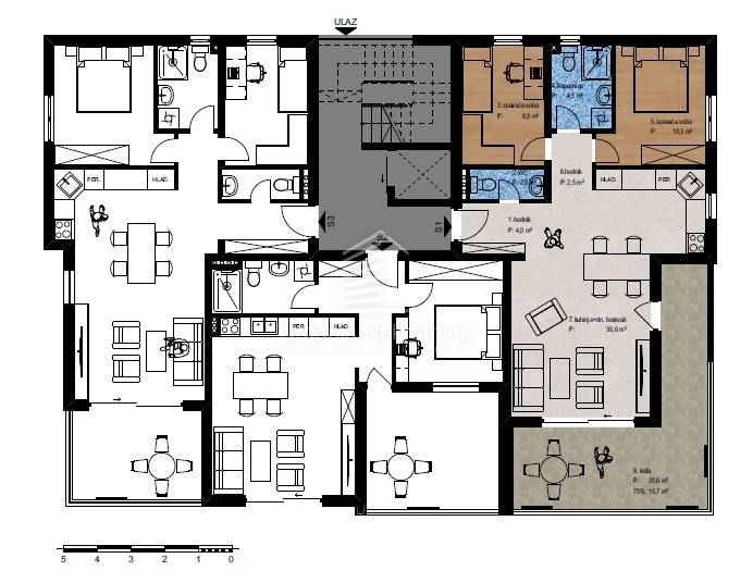 In the Crvene Kuće area of Zadar, a new residential zone is currently under development. A total of ten modern buildings are being constructed, with a focus on quality, high standards, and smart functionality. The neighborhood will feature its own park and children’s playground, creating a peaceful and family-friendly environment close to the sea.