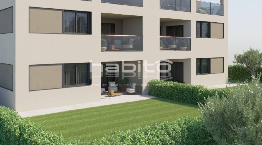 Apartment for sale on the 1st floor of a newly built building in Porec, 2 km from the center and only 600 m from the beach and a handful of restaurants and accompanying facilities. The apartment of 110 m2 contains 3 bedrooms with their own bathrooms, kitchen, dining room, living room, guest toilet, storage room and a spacious covered terrace.