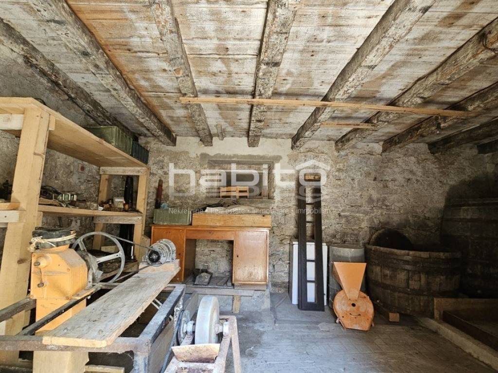 The ground floor of the house consists of an entrance hall, bathroom, kitchen, living room, two bedrooms and a balcony of approx. 7 m2 that offers a beautiful panoramic view of inner Istria.