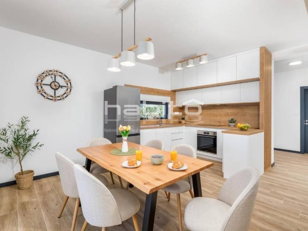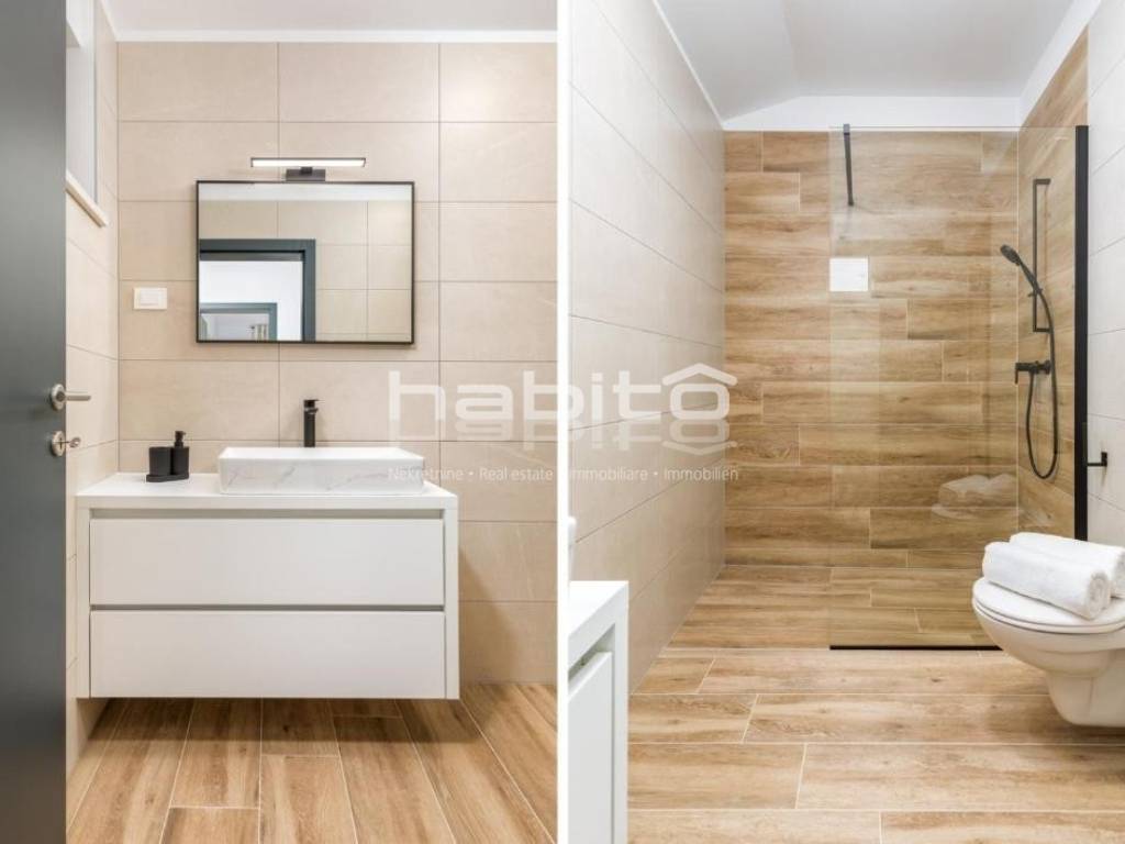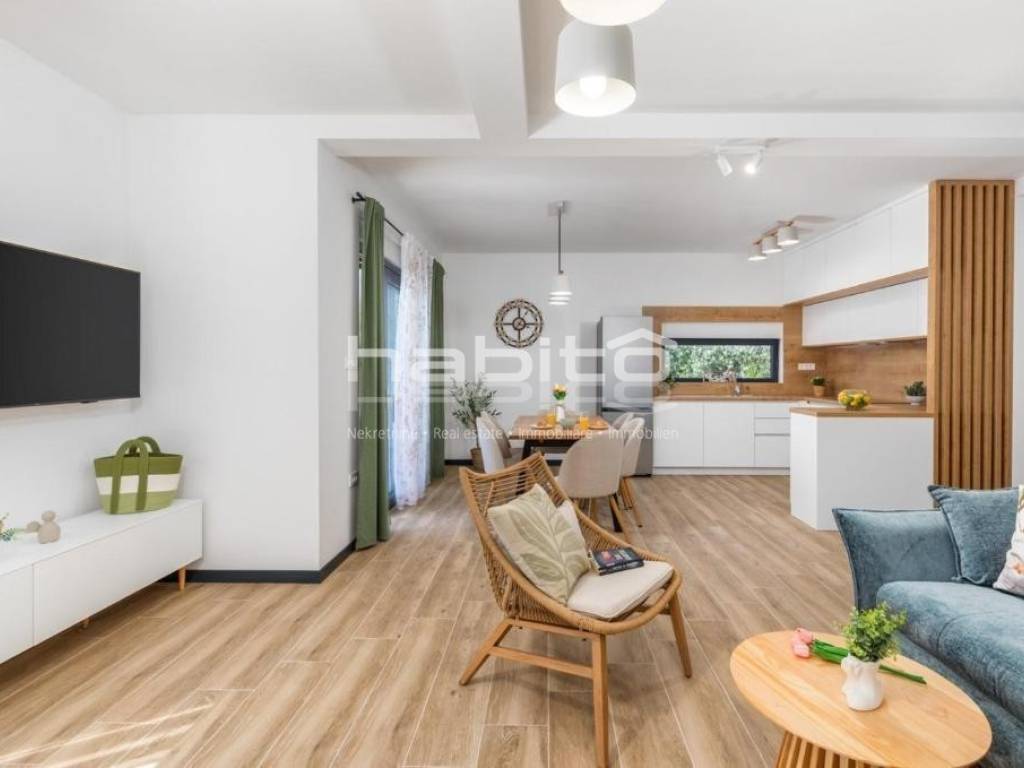 Newly built house, modern design is built on a plot of 521 m2. The house of 140 m2 consists of ground floor and first floor and contains 3 bedrooms, 3 bathrooms, guest toilet and open space kitchen, dining room and living room with exit to the covered terrace. The house is equipped with the first phase of underfloor heating and air conditioners. In the yard there is a swimming pool, summer kitchen and spacious parking.