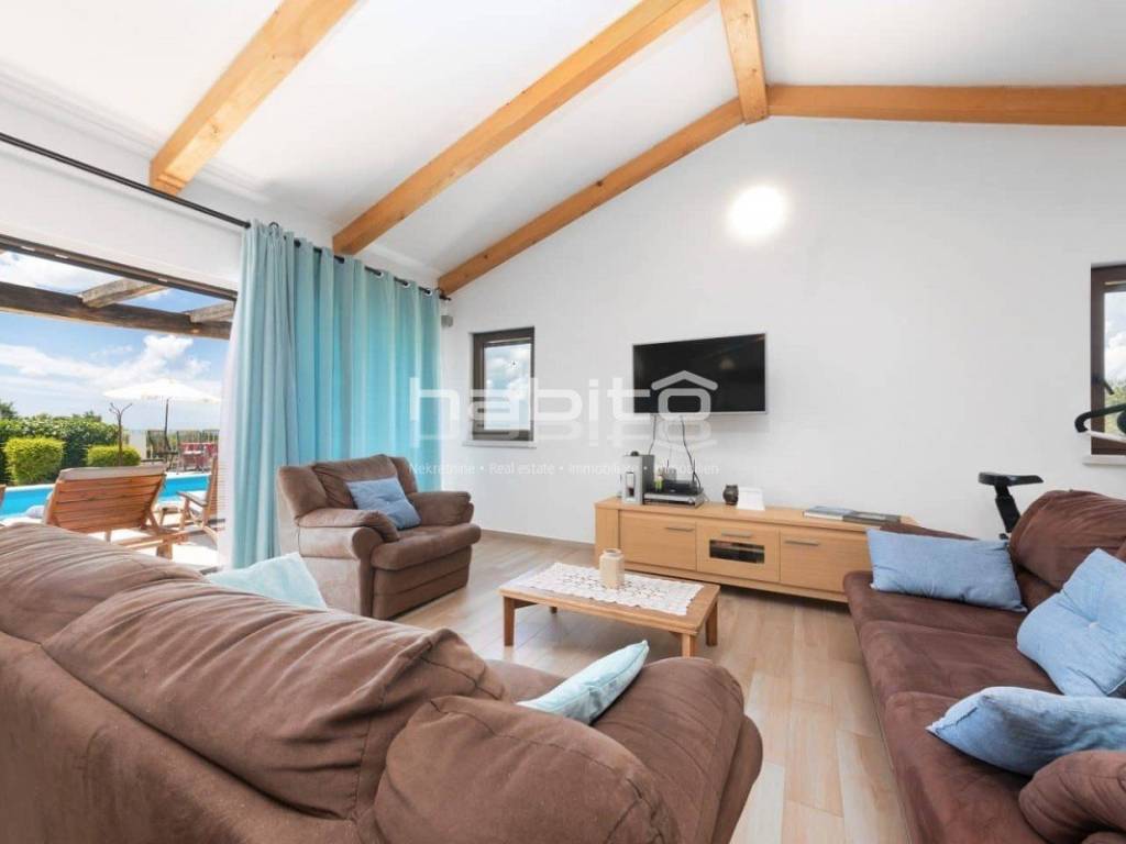 A newly built villa with a swimming pool is located on the edge of the village, not far from Visnjan, 15 kilometers from Porec and its beaches.
