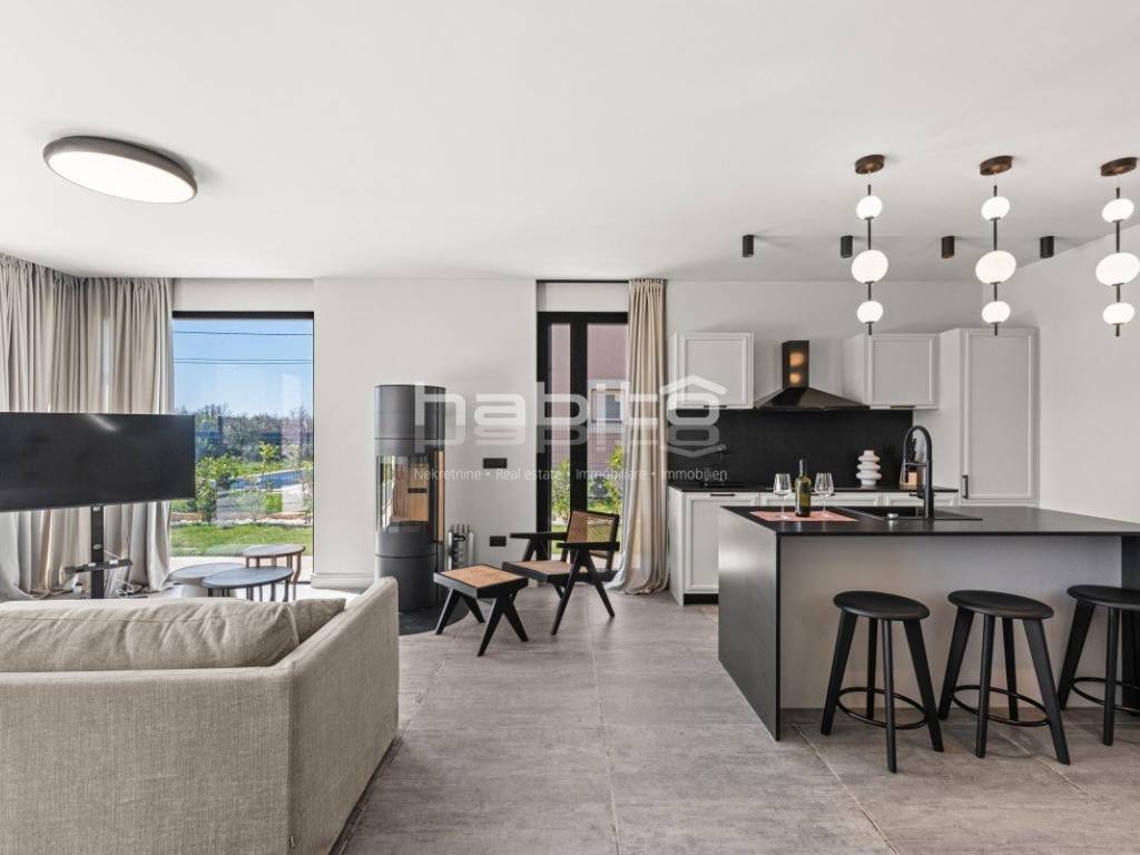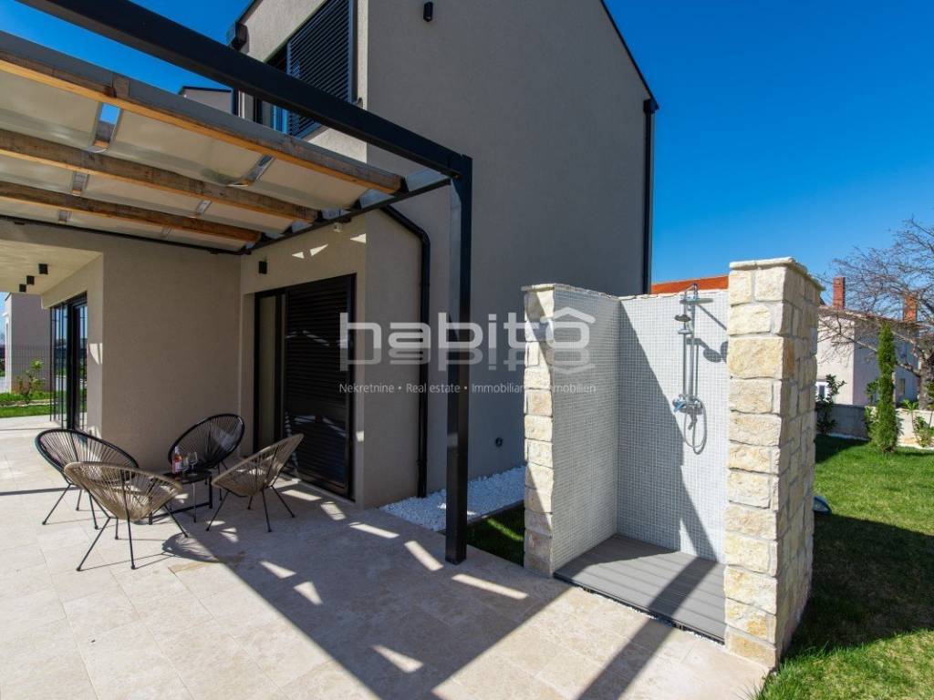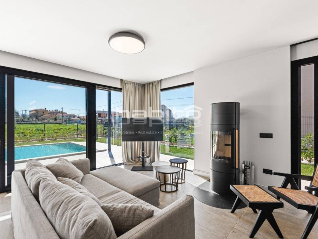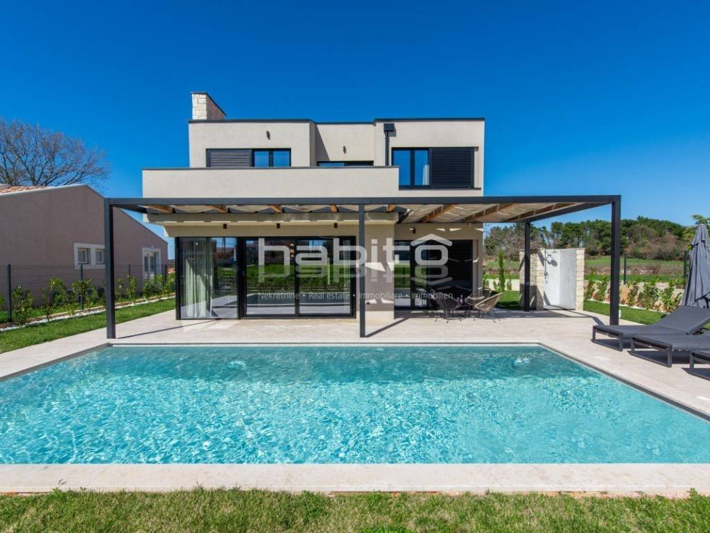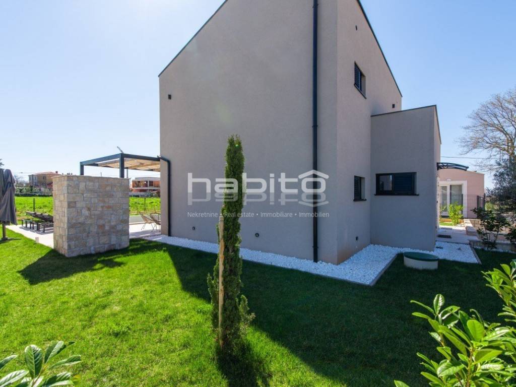We present a modern, newly built villa of 130 m (indoor space) located on a 513 m plot in the quiet settlement of Krnica, on the east coast of Istria.
