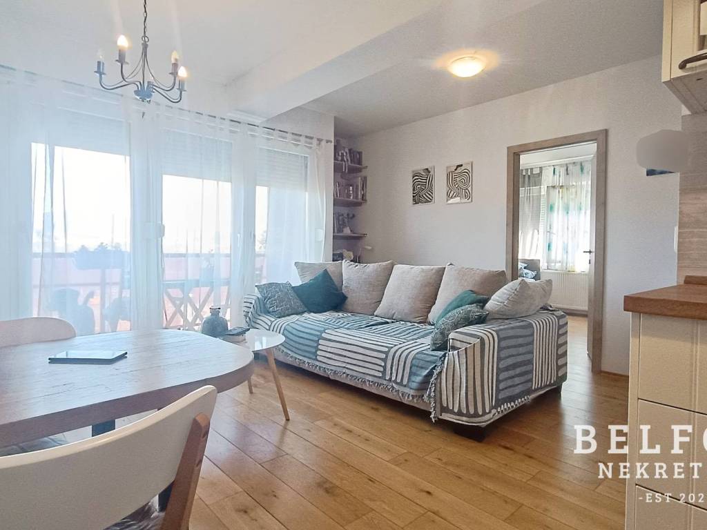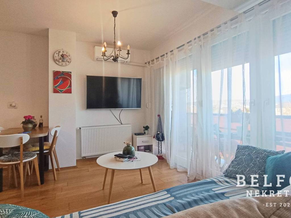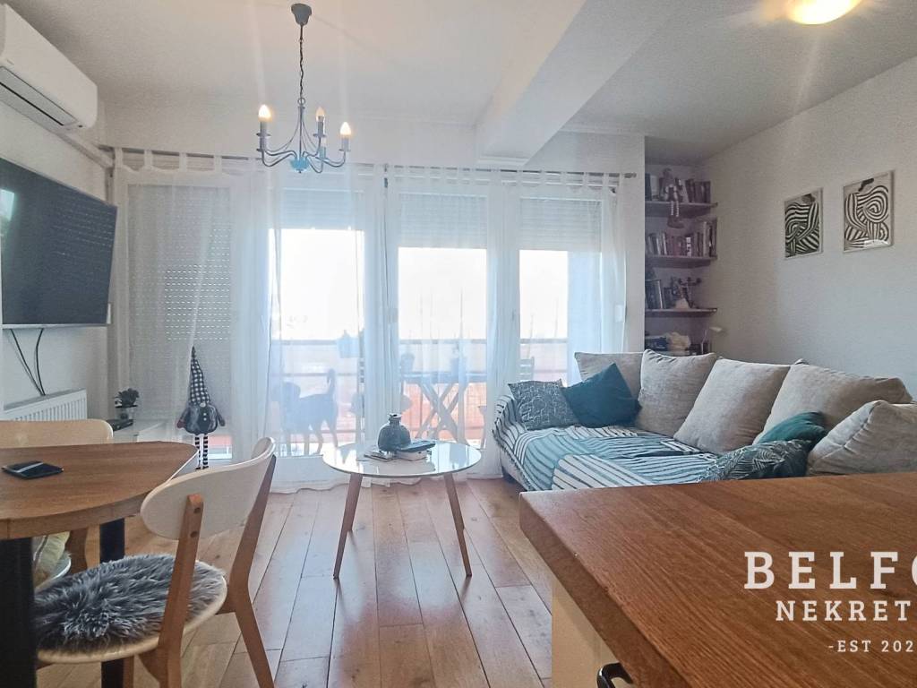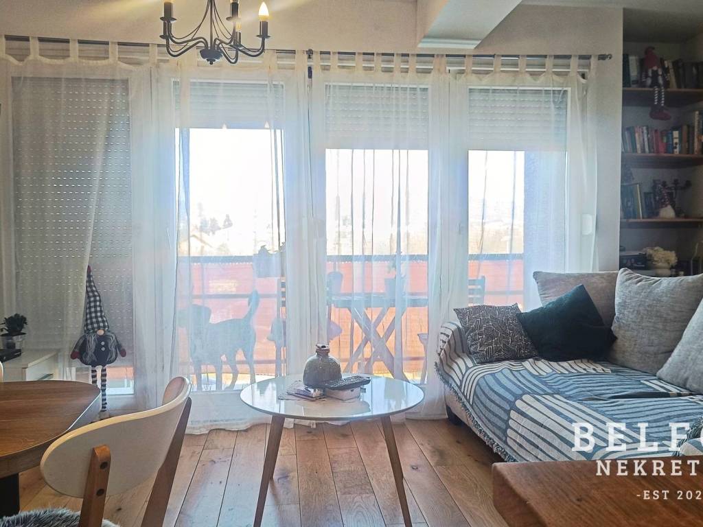 The apartment offers a beautiful panoramic view and is located in a quiet area surrounded by nature, just 5 minutes away from almost all shopping centers (City Center One, Z Center, Kaufland, Lidl, Plodine, Spar, Konzum), a 10-minute walk to the Sava embankment, and a 10-minute drive to Jarun.