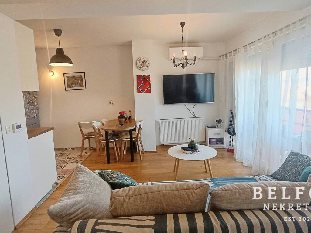 The entire building was renovated in 2017, during which the roof was replaced and the building interior was refurbished. In 2018, the apartment was completely adapted (installations, flooring, PVC joinery, ceramics, underfloor heating in the bathroom, and overall apartment finishing).