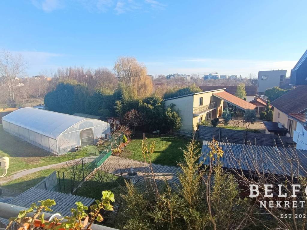 Stan ima prekrasan panoramski pogled i nalazi se na mirnoj lokaciji okružen prirodom, a na svega 5 minuta udaljenosti od gotovo svih trgovačkih centara (City center one, Z centar, Kaufland, Lidl, Plodine, Spar, Konzum), 10 minuta hoda do Savskog nasipa te 10 minuta vožnje do Jaruna.