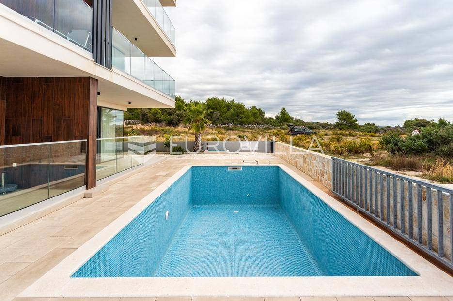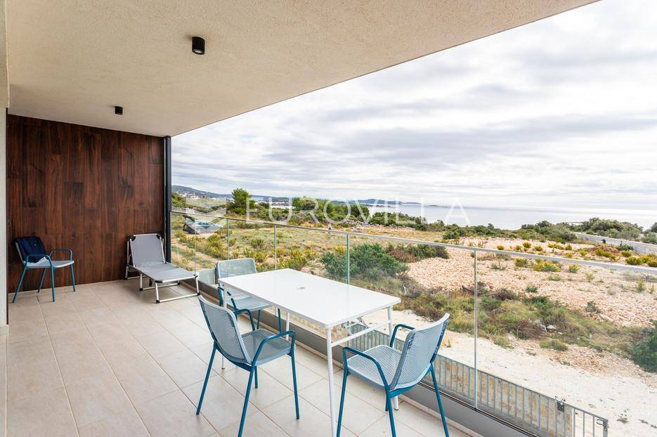 Premium apartman s panoramskim pogledom na more na poluotoku Ražanj, Stivašnica. Nalazi se na prvom katu moderne, visokokvalitetne, gotovo nove zgrade. Ono što ovaj apartman čini posebnim jest impresivan natkriveni balkon površine 25,40 m², koji se proteže duž cijele fasade i pruža panoramski pogled na more i okolni mediteranski krajolik. Staklene stijene od poda do stropa u dnevnoj sobi osiguravaju obilje prirodnog svjetla i otvoren pogled.Neto korisna površina iznosi 61,77 m², dok ukupna površina iznosi 71,90 m². Tlocrt je osmišljen za funkcionalno i udobno korištenje prostora i sastoji se od:dnevnog boravka i blagovaonice s kuhinjom otvorenog konceptadvije spavaće sobe, obje s izlazom na balkonkupaoniceulaznog prostoraNekretnini pripada jedno vanjsko parkirno mjesto te pravo korištenja zajedničkog bazena u dvorištu zgrade.Stan se može kupiti potpuno namješten, što omogućuje trenutnu upotrebu bez dodatnih početnih ulaganja. Idealan je kao kuća za odmor, investicija za turistički najam ili druga rezidencija uz more.Oprema i završna obrada:Klimatizacija u svim prostorijamaPodno grijanje u dnevnom boravku, kuhinji i kupaoniciVisokokvalitetne aluminijske stolarije s velikim kliznim staklenim stijenamaIzlaz na balkon iz dnevnog boravka i obje spavaće sobePodne pločice velikog formataStaklena ograda balkona s otvorenim pogledom na moreElektrične roleteKomarnici na prozorima i balkonskim vratimaLokacija:Uvala Stivašnica poznata je po mirnom okruženju, čistom moru i očuvanoj prirodi te se smatra jednom od najpoželjnijih lokacija u području. Plaža se nalazi otprilike 100 metara od zgrade, samo nekoliko minuta hoda.U neposrednoj blizini nalazi se Punta Planka, najistaknutija kopnena točka okrenuta otvorenom moru, smještena oko 500 metara od apartmana.U mjestu se nalaze restorani, barovi i supermarketi za svakodnevne potrebe.Dostupnost:Zračna luka Split udaljena je manje od 30 minuta vožnje automobilom. Rogoznica je udaljena svega nekoliko kilometara, dok su povijesni UNESCO gradovi Trogir i Šibenik lako dostupni automobilom.Više informacija na upit.