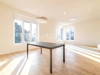 U rezidencijalnom dijelu grada, u Mallinovoj ulici prekrasan, potpuno novo renoviran četverosoban stan smješten na prvom katu novo adaptirane vile.Stan se sastoji od ulaznog hodnika, prostranog dnevnog boravka povezanog s kuhinjom i blagovaonicom, spavaće sobe s kupaonicom, dvije spavaće sobe i druge kupaoniceNa raspolaganju su zajednički vrt u dvorištu površine cca 70 m², jedno parkirno mjesto i spremište.Stan se može namjestiti u roku od 2-4 tjedna, i u tom slučaju cijena najma iznosi 2500 €.Ovaj stan predstavlja izvrstan izbor za one koji traže kvalitetu, moderan dizajn i vrhunsku lokaciju.Ostale informacije dostupne su na upit.