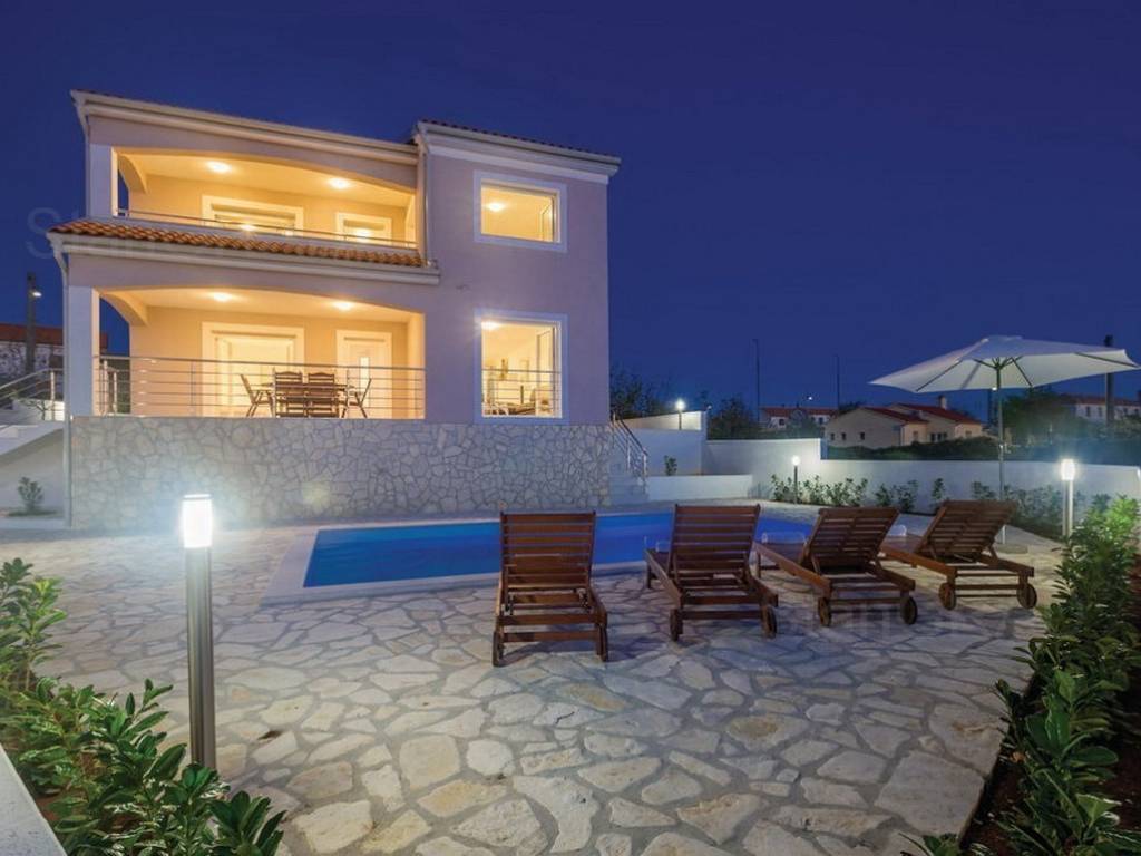 From the offer of excellent properties with our agency in the northern Adriatic, a modern house for tourism built in the sought-after Croatian and Kvarner coastal region of the island of Krk stands out. This desirable house is located in a very good location near the town of Krk. Structurally, this is a detached house with two floors. The modernly built house consists of a space distributed over a total of 2 floors. The house covers a total area of ​​170 m2. On the mentioned area, on the ground floor there is an entrance hall, a living room with a kitchen and dining room, a bedroom with an en-suite bathroom, a toilet and a covered terrace with access to the pool and sundeck. On the first floor of the house there are 3 bedrooms with en-suite bathrooms, two of which have access to a terrace with a sea view. The interior spaces of the property are particularly well maintained and fully equipped with the necessary technical devices and very high-quality furniture. As part of the property of this house, there is a carefully landscaped and maintained garden with a 40 m2 swimming pool. The spacious garden of the described property has been arranged to comfortably park several vehicles. In addition to the previous characteristics, it is important to say that the house has a beautiful view of the sea and the coastline. This property is owned by a natural person, so the buyer is obliged to pay 3% sales tax when transferring its ownership to his name. The seller of the property guarantees a quick transfer of ownership rights and proper ownership and technical documentation. Please contact us and we will be happy to receive you at our office on the island of Krk. In addition to finding, touring and presenting the house, the expert team of our agency will be happy to assist the buyer of the property in registering the ownership in the land register, as well as in transferring the utility bills to his name.
