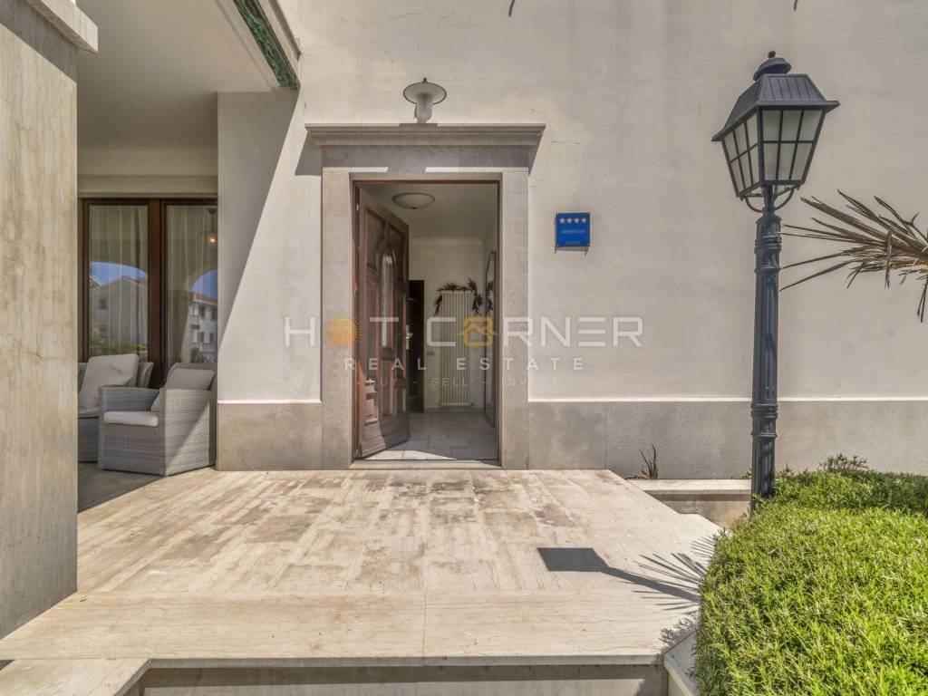 Surrounded by a beautiful garden, the palazzo spreads over two floors. The views are breathtaking too, adding to the already advantageous location by the Adriatic sea.