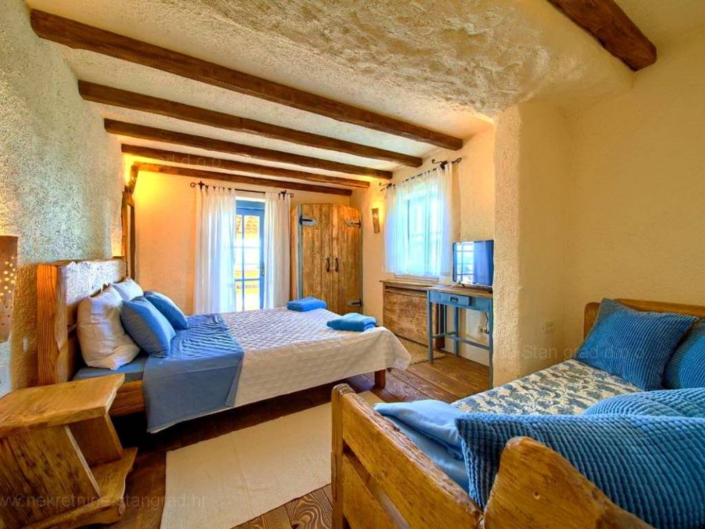 From the wide range of properties available on the northern Adriatic, Stan Grad Immobilien offers a stunning coastal villa in the attractive tourist region of the island of Krk. This rustic stone house is located in the vicinity of the well-known town of Malinska, in a peaceful location away from city noise. In terms of building type, this house can be classified as a semi-detached house with a basement, ground floor, first floor, and high attic.
