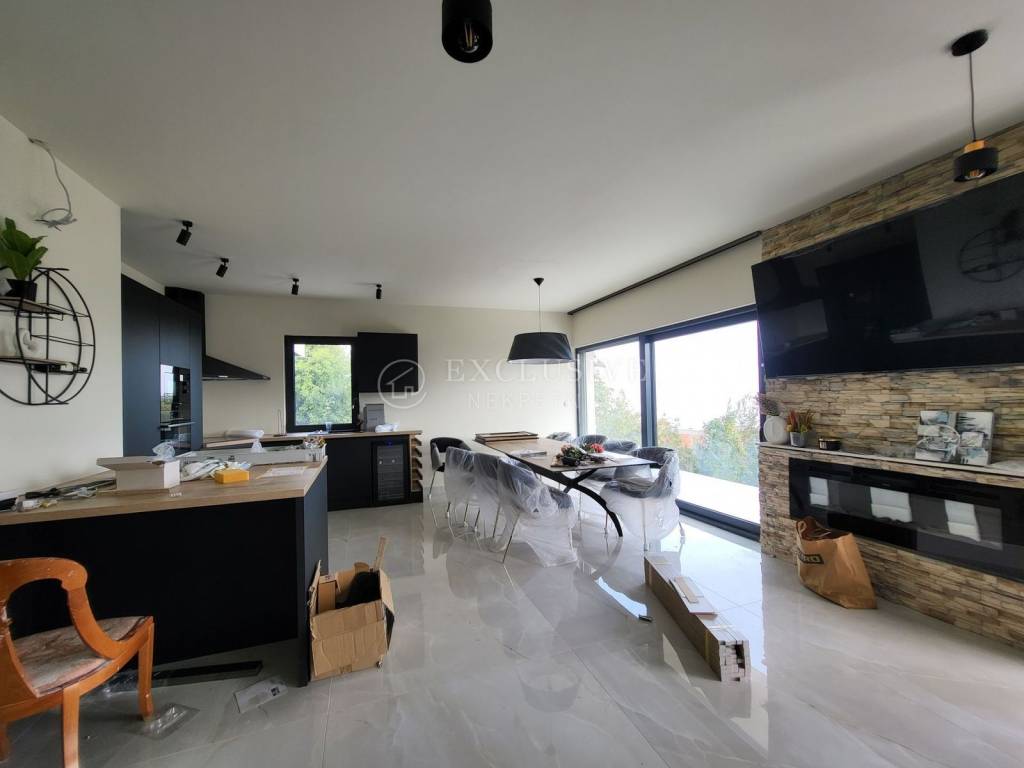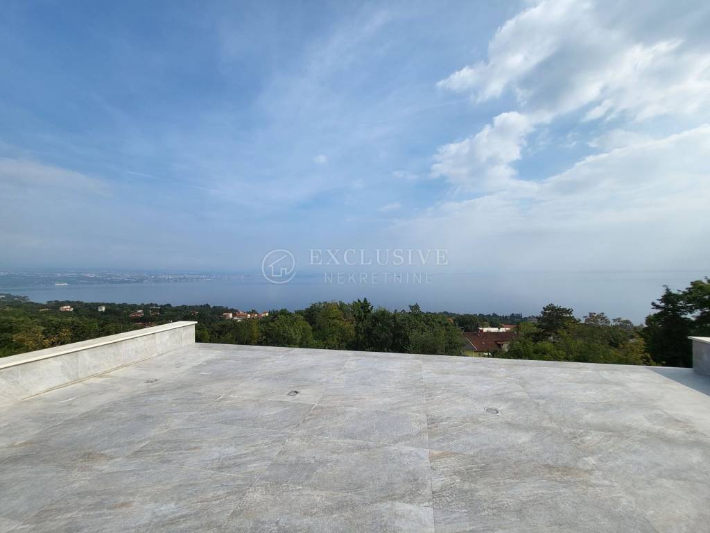 LOVRAN - for sale is a fantastic villa above Lovran with an indoor pool, sea view, surrounded by greenery in a quiet location. The total living area is 400m2. The house has four bedrooms, each with its own bathroom. Spacious living room and kitchen in an open space concept with access to the terrace. On the ground floor there is an indoor heated pool and a wellness area. A spacious garage and storage rooms are in the basement. It is sold fully furnished.