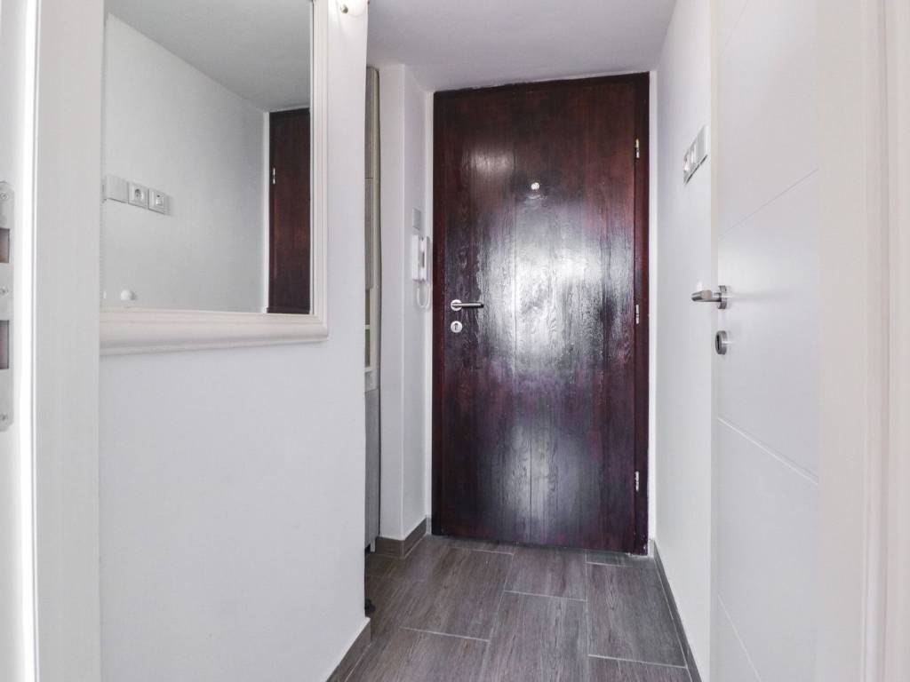 Stan je renoviran 2021. godine. Svjetao je, uredan i čist. Površine je 25 m2 te maksimalno iskorišten. Sastoji se od ulaznog hodnika, kupaonice s tuš kabinom i toaletom, sobe s blagovaonskim dijelom te potpuno opremljene kuhinje napravljene po mjeri. Lijep neometan pogled s prozora na park i zelenilo!