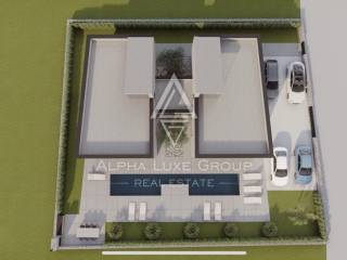 Each unit is 202m2 in size and has its entrance. The house has three bedrooms, two showers, a living area with a dining area and kitchen, and a bathroom in the basement. A glass summer kitchen and a swimming pool are located between the homes.