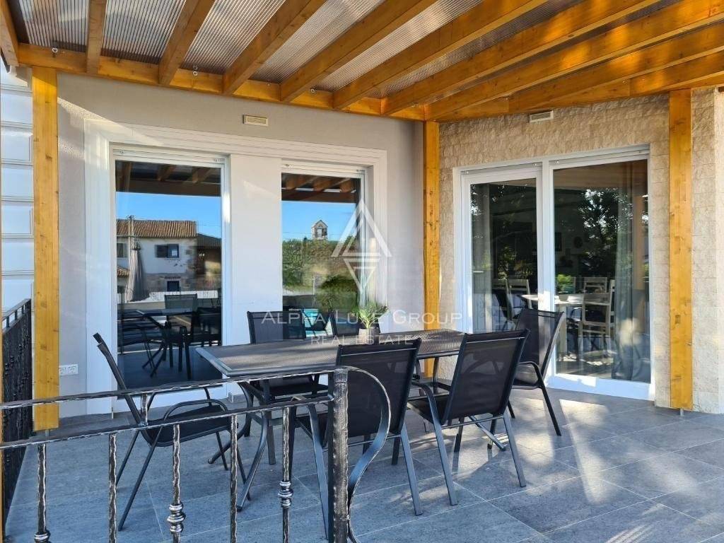 For sale is an expansive, fully furnished villa in the serene and picturesque region of Kaštelir, Istria, just 4 km from the azure waters of the sea. This property is a blend of luxury and comfort, consisting of the main house and a separate apartment unit.
