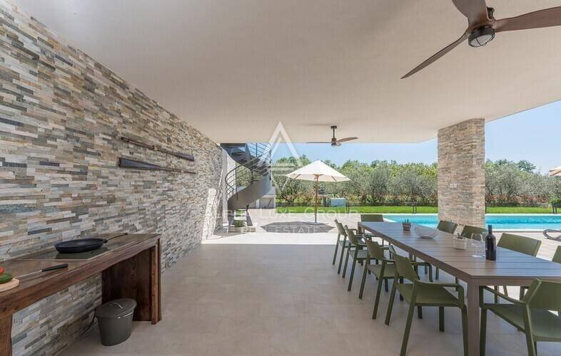 In the heart of untouched Istrian nature, surrounded by centuries-old olive groves and the scents of the Mediterranean, lies this beautiful modern villa that combines the elegance of contemporary design with the authentic charm of Istria.