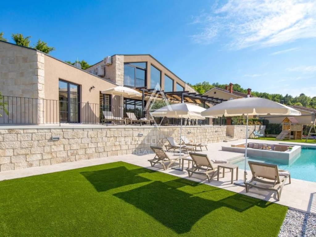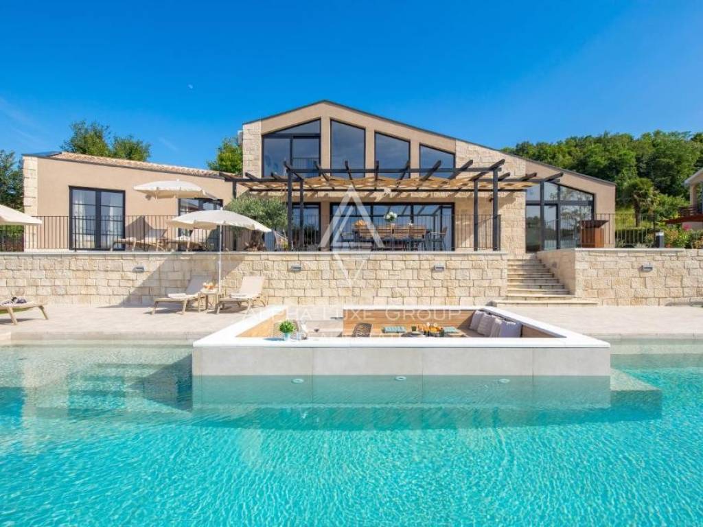 Outdoors, the highlight is the infinity pool with a three-side overflow and a saltwater filtration system. Its seamless design creates the impression of water merging with the surrounding landscape. The entire estate is fully fenced, illuminated and secured, with a covered parking area for three vehicles. Designed for buyers seeking luxury, serenity and a deep connection with nature, this villa represents an exclusive Istrian retreat.