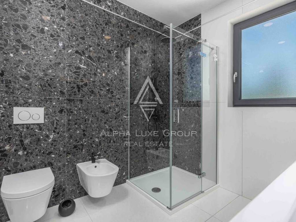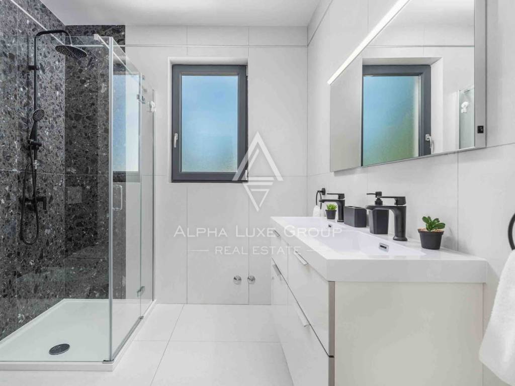 The home includes two well proportioned bedrooms, each with its own private bathroom, ensuring comfort and privacy for residents and guests. A separate guest toilet enhances daily convenience. The property is equipped with air conditioning and underfloor heating throughout, ensuring optimal climate control year round.