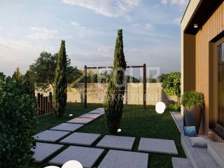 In the peaceful Istrian village near Svetvinčenat, a modern ground floor house with a swimming pool and beautiful sea views is being sold. The house is designed as a high-quality new construction, expected to be completed in 2025/2026, with about 70% of the work already completed and being sold in its current state. It covers an area of 180 m2 and is located on a plot of 813 m2, with a landscaped garden of 633 m2. The interior is designed as a spacious and functional home with four bedrooms, each with its own bathroom, a large living room and kitchen with access to a covered terrace. Underfloor heating and aluminum joinery are planned, and the entire outdoor space is designed for complete privacy and enjoyment. Next to the pool there is a summer kitchen, outdoor shower, and a children's playground area. Two covered parking spaces are also provided. The property is ideal for a future family home, a holiday home, or an investment.