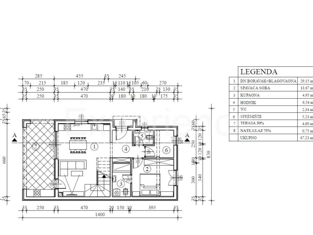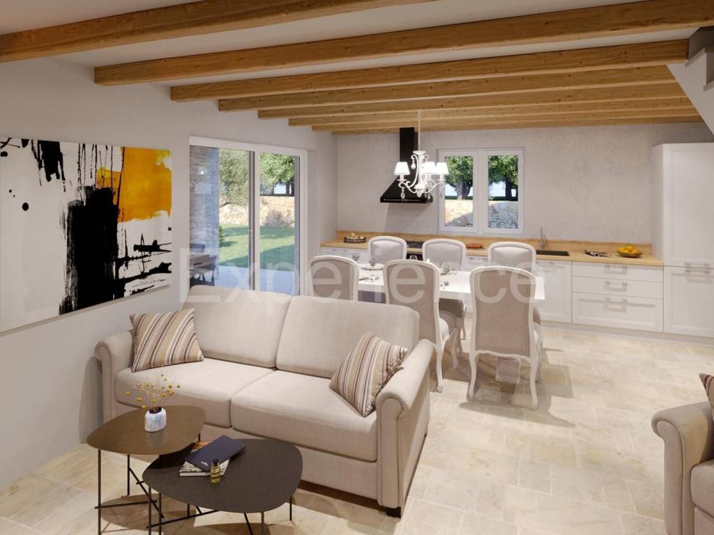 From the living area, there is access to a covered terrace, where a summer kitchen with a barbecue is planned.