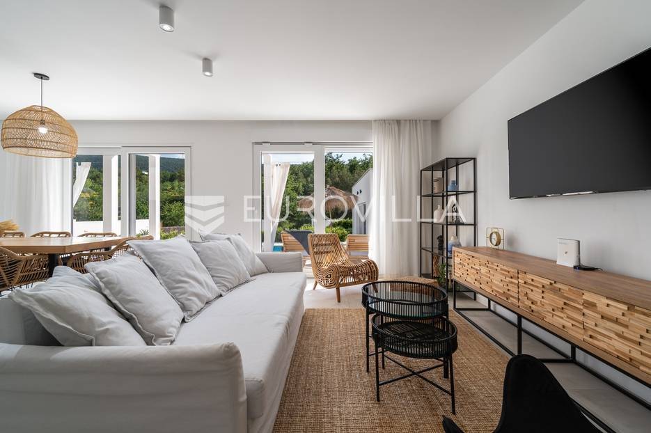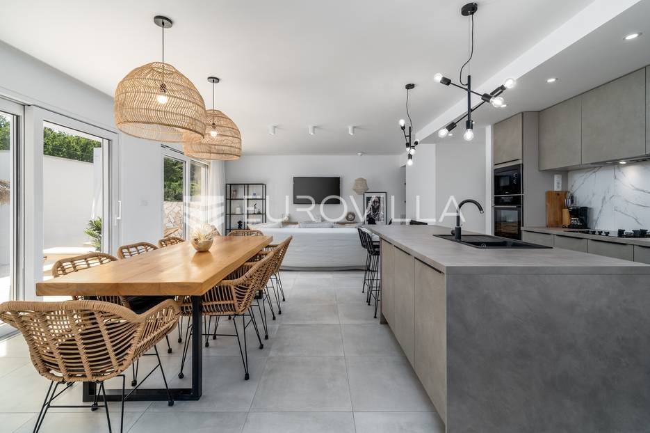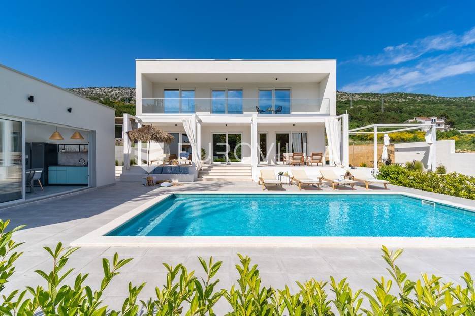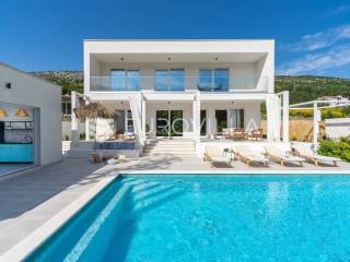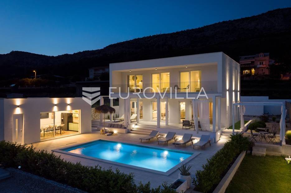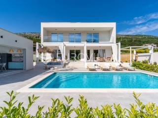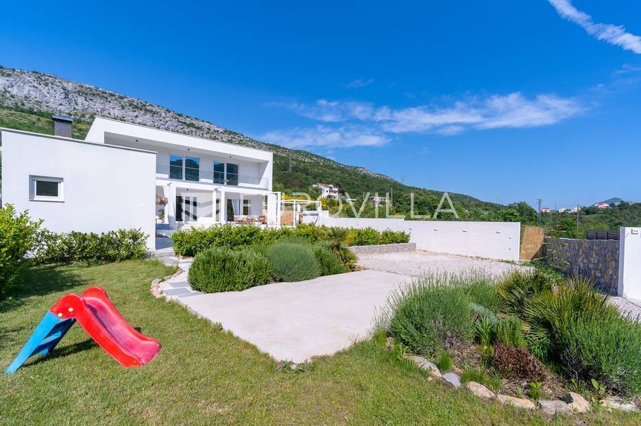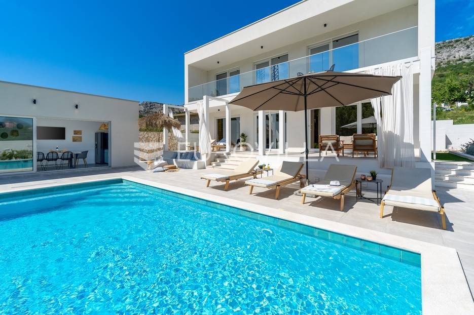 U neposrednoj blizini Omiša smještena je ova moderno uređena vila od 160m2 na zemljištu od 800m2, okružena zelenilom sa puno prirodnog svijetla, koja odiše oazom mira.Sastoji se od velike kuhinje, blagavaonice, dnevnog boravka, četiri spavaće sobe, četiri kupaonice, jednog wc-a i balkona.Ispred vile se nalazi bazen, vanjska kuhinja, prostor za djecu i dva parkirna mjesta.Postoji mogućnost kupovine još dodatnih 800m2 parcele koja se nalazi pokraj vile.Više informacija na upit.