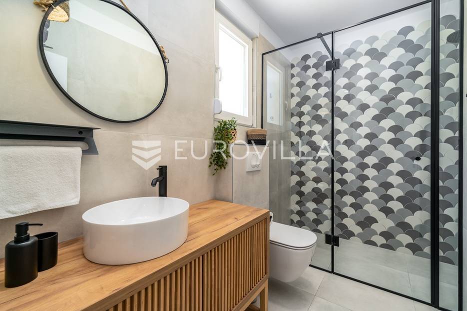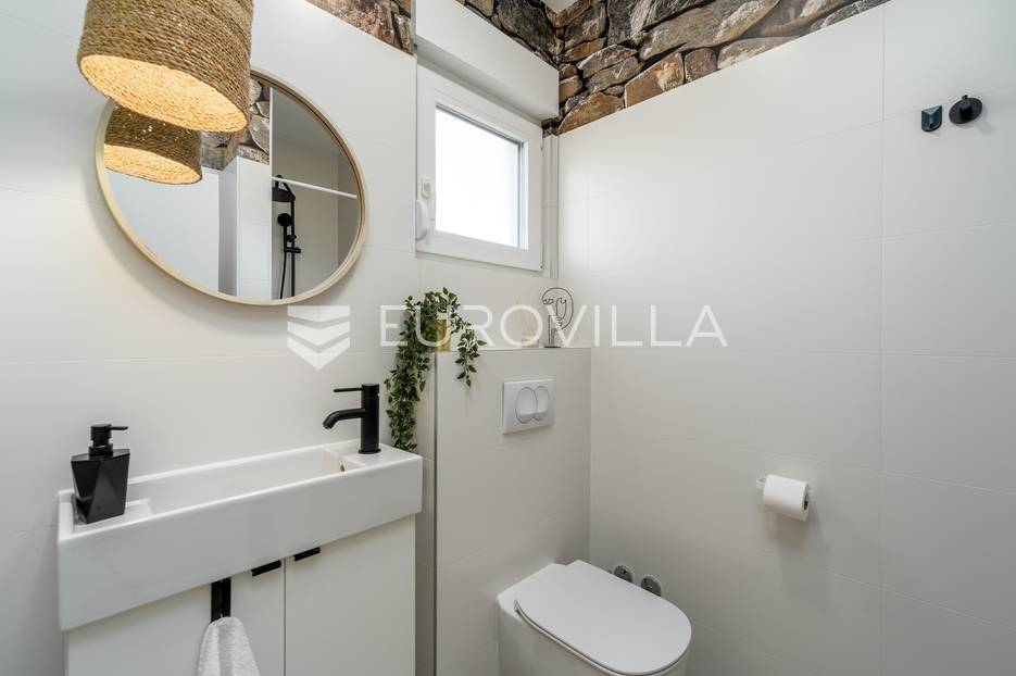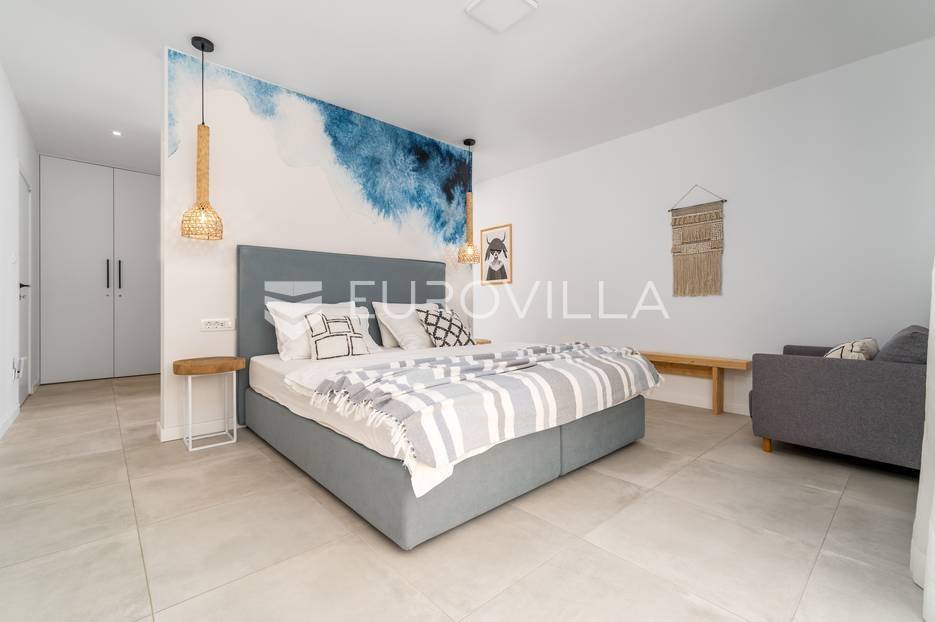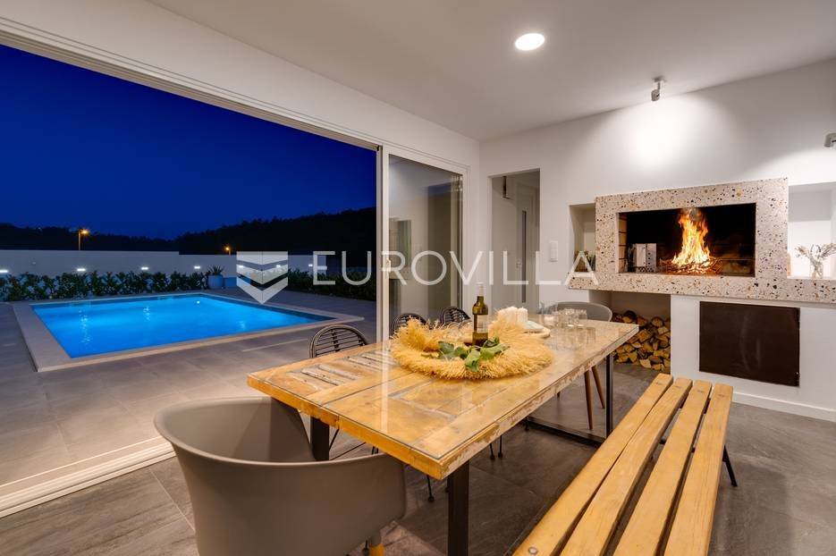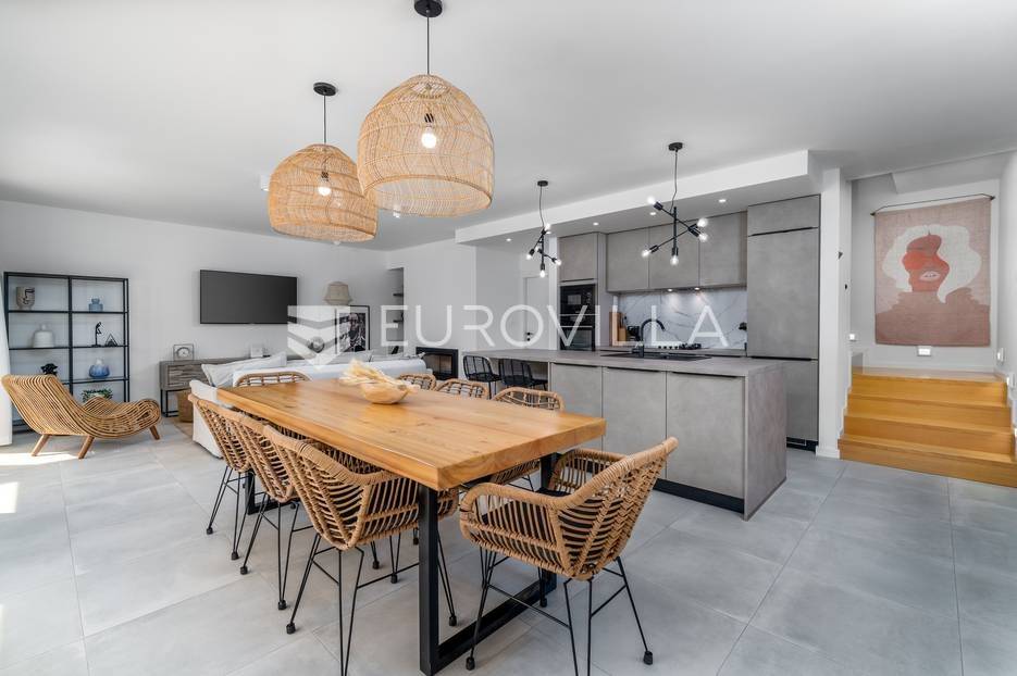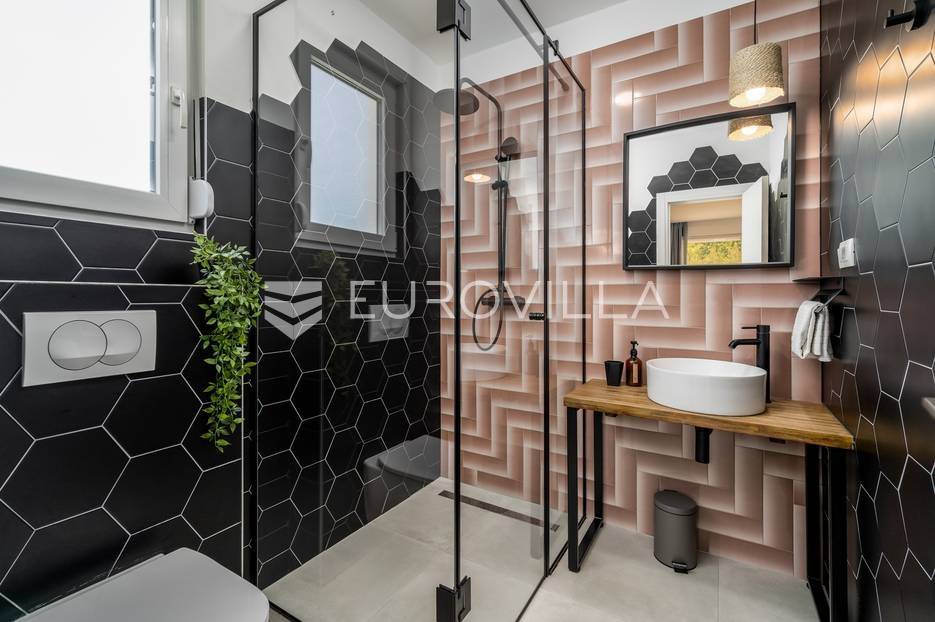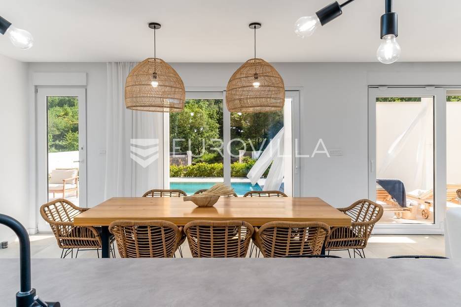 U neposrednoj blizini Omiša smještena je ova moderno uređena vila od 160m2 na zemljištu od 800m2, okružena zelenilom sa puno prirodnog svijetla, koja odiše oazom mira.Sastoji se od velike kuhinje, blagavaonice, dnevnog boravka, četiri spavaće sobe, četiri kupaonice, jednog wc-a i balkona.Ispred vile se nalazi bazen, vanjska kuhinja, prostor za djecu i dva parkirna mjesta.Postoji mogućnost kupovine još dodatnih 800m2 parcele koja se nalazi pokraj vile.Više informacija na upit.