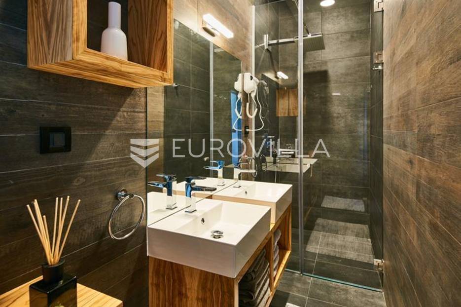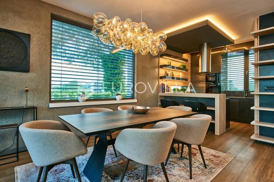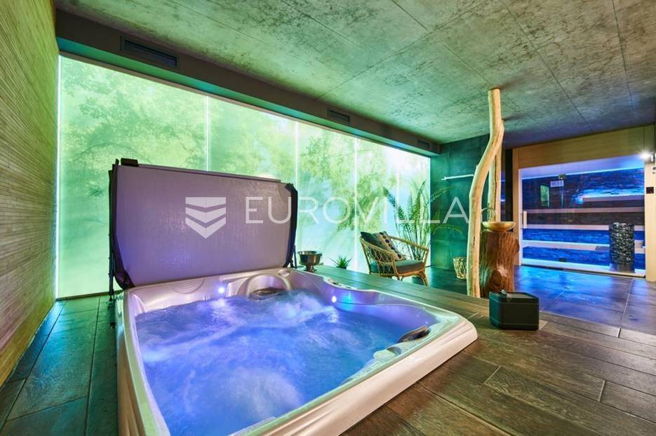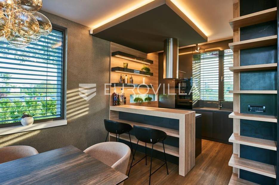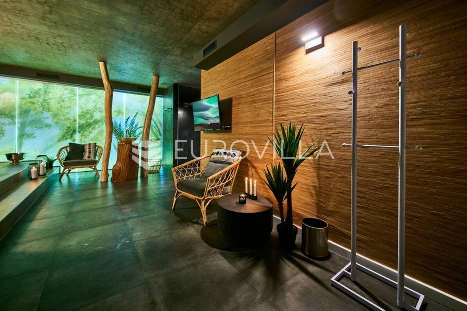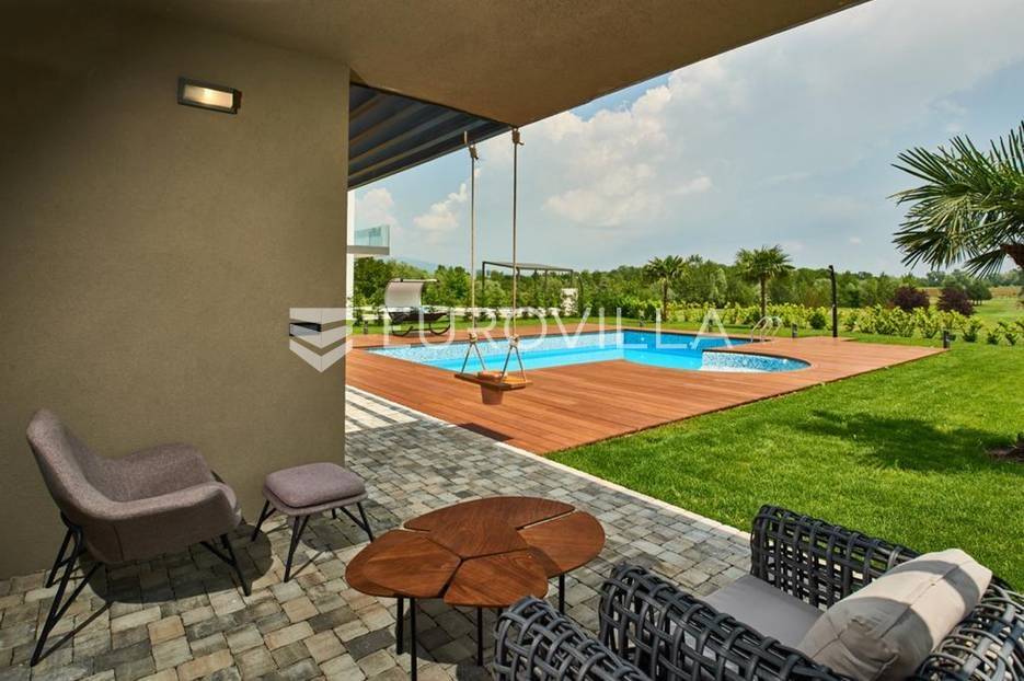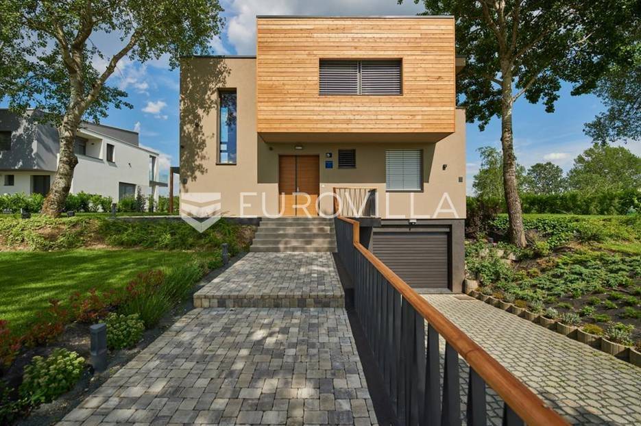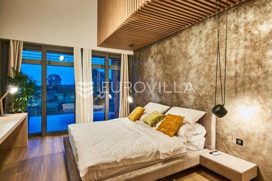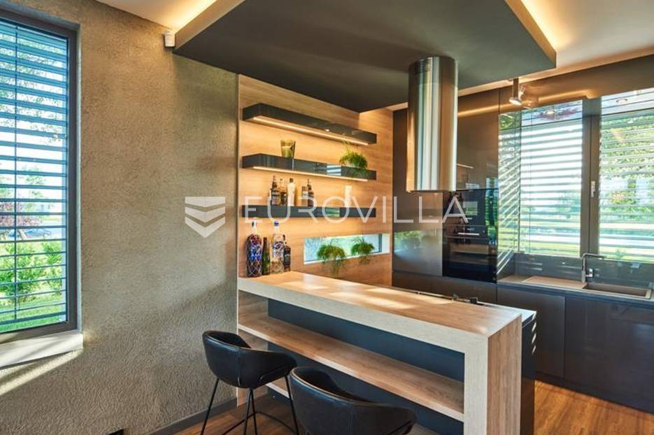 Golf tereni, Jadranska Avenija (Lanište), prekrasna obiteljska novoizgrađena samostojeća vila, uređena 2020 god. Razvedena u 3 etaža, ukupne neto korisne površine 300m2, smještena na zemljištu površine 800m2. Garaža za 1 automobil i parking za još 5 automobila.Suteren: kotlovnica, wellness, ostava, vešeraj.Prizemlje: ulazni hodnik, toalet za goste, garderoba, kuhinja, ogroman dnevni boravak s blagovaonicom. Iz boravka se izlazi na natkrivenu terasu i vrt i bazen.Kat: 3 spavaće sobe, 2 kupaonice.Odlična kvaliteta gradnje, protuprovalna ulazna vrata, dobra vanjska izolacija, alu stolarija s duplim staklima, žaluzine na električno upravljanje, grijanje na toplinsku pumpu stropno... Kompletno namještena i opremljena.Idealna za miran obiteljski život, samo nekoliko min od shoping centra Arena. Prekrasan pogled na mala jezera i golf terene.Minimalan rok 4 god. Ostale informacije na upit.
