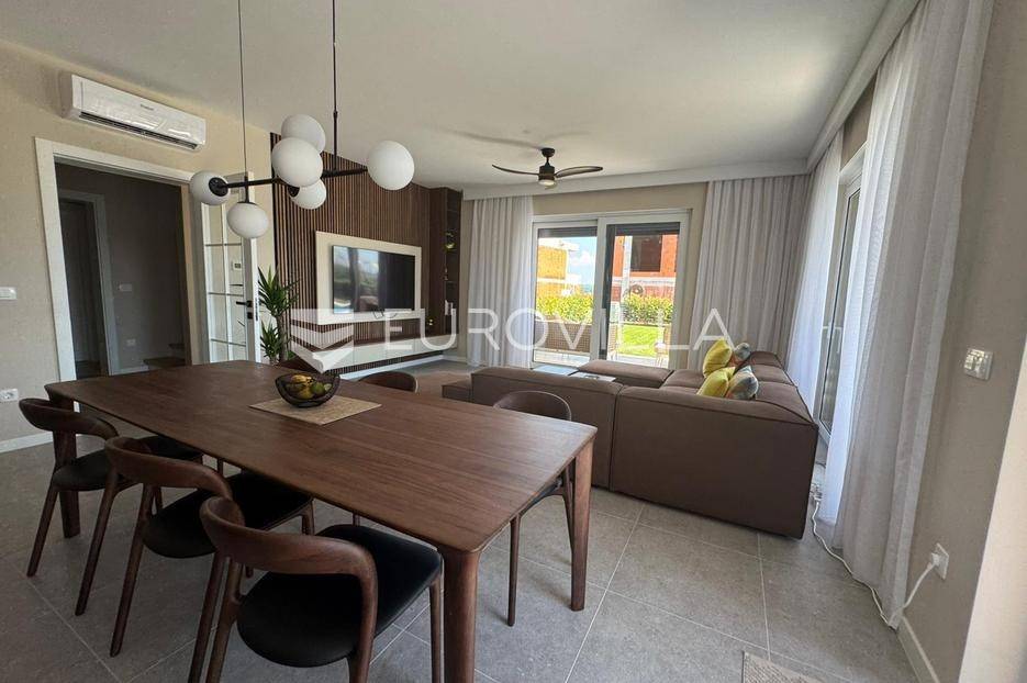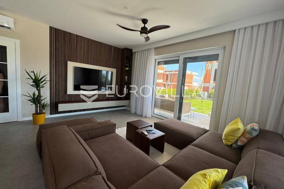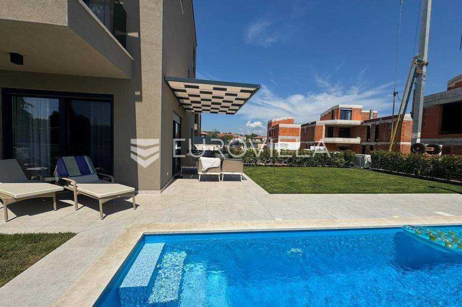 U prekrasnom Taru nalazi se zgrada s 4 stambene jedinice.Stan "2" se nalazi u prizemlju i prostire se na 2 etaže.Etaža 1: ulazni hodnik, tehnička soba s vešerajem, gostinjski wc, jedna spavaća soba s vlastitom kupaonicom, ostava, open space kuhinja, blagovaona i dnevni boravak s izlazom na natkrivenu terasu, privatni bazen i dvorište.Etaža 2:hodnik, 2 spavaće sobe s vlastitim kupaonicama i izlazom na natkriveni balkon s pogledom na more i stari grad.Stanu pripada spremište u podrumu i jedno nenatkriveno parking mjesto s punionicom.Useljivo odmah.Za više informacija stojimo Vam na raspolaganju.