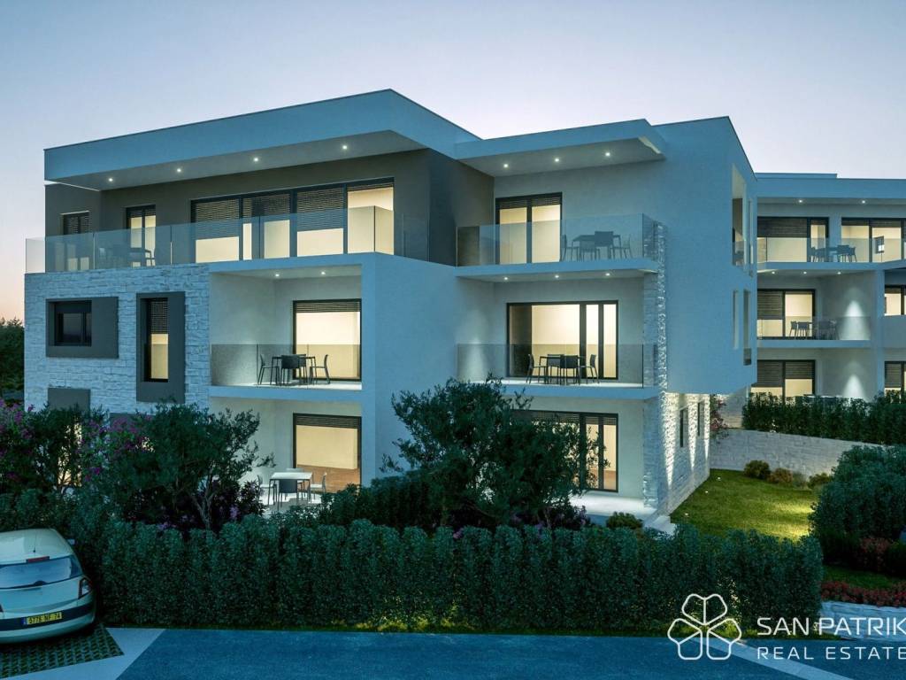 Apartments of premium construction and luxurious design are for sale, located in the idyllic corner of Brodarica, a picturesque suburb of Šibenik. This modern residential complex is only 250 meters away from the crystal-clear Adriatic Sea and a beautifully maintained beach, providing an ideal location for rest and relaxation.