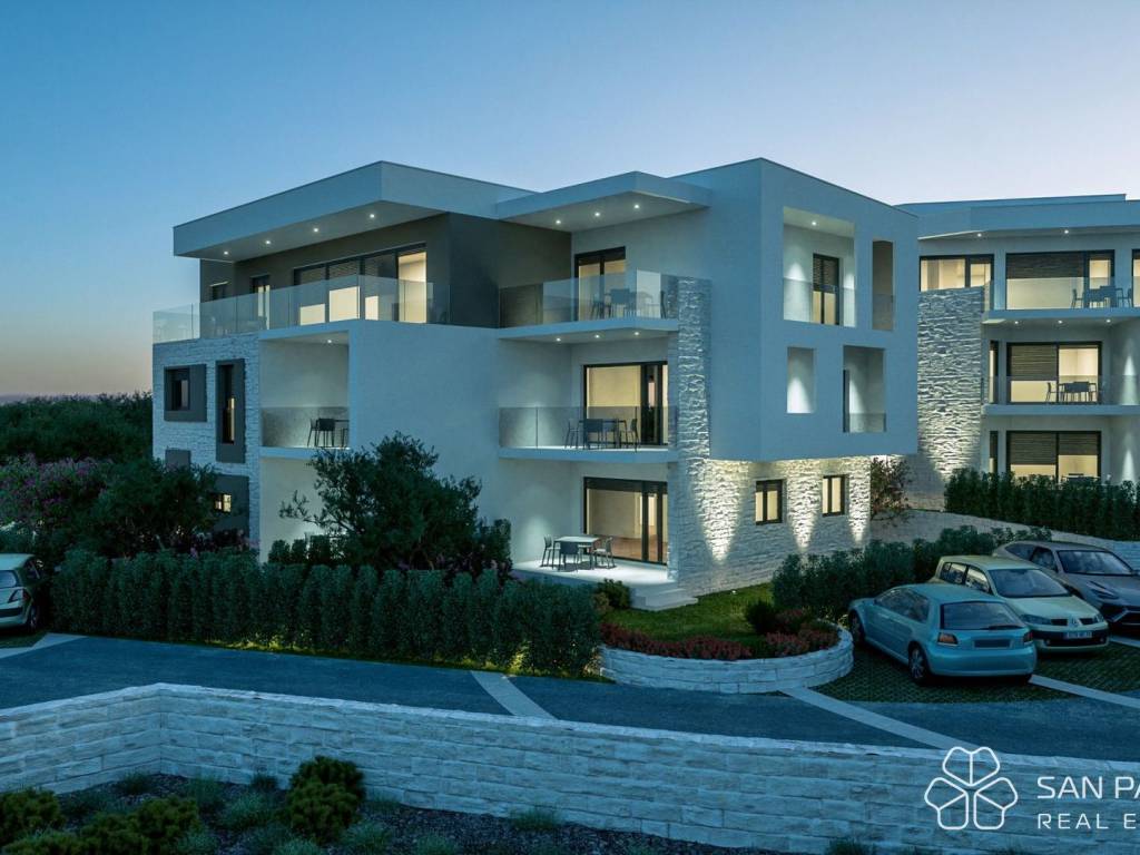 Premium construction and luxurious design combined with proximity to a beautiful beach and clean sea make these apartments a perfect investment and a place for relaxation. This luxury apartment complex consists of four apartment buildings and is located 9 km from the A1 highway entrance, 45 km from Split Airport, and in close proximity to the Krka and Kornati national parks.