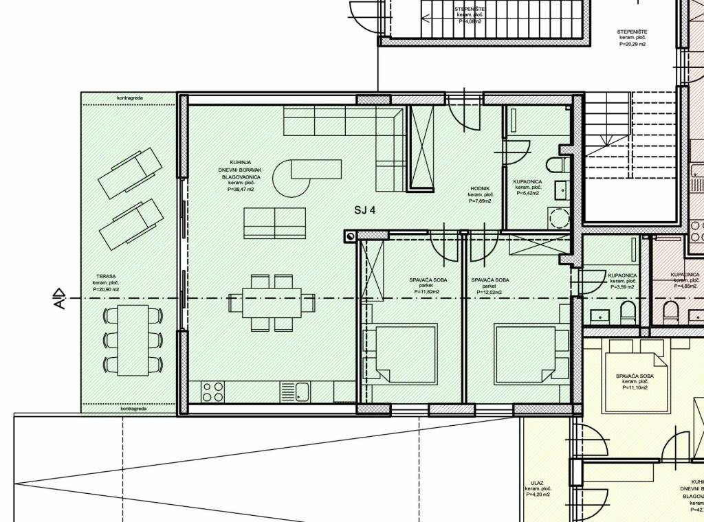 Apartment S-4 - ground floor - living area 79.01 m2 (2 bedrooms + 2 bathrooms) + terrace (21 m2 - SE) + garden (40 m2) + garage parking space + storage in the basement, net calculation area 105.06 m2 = 472,770 EUR