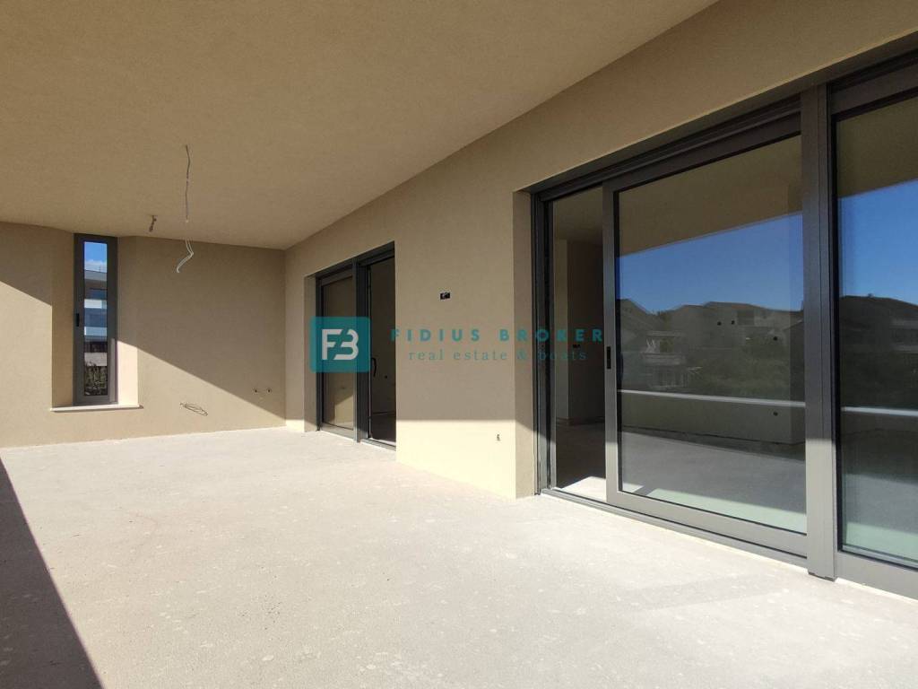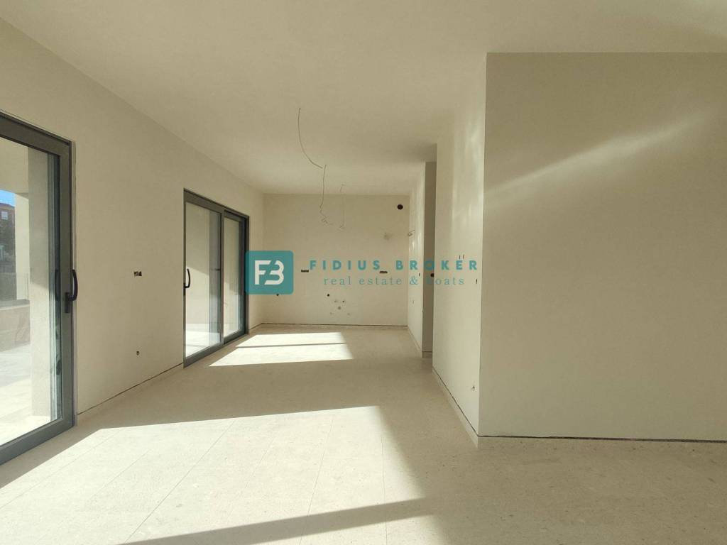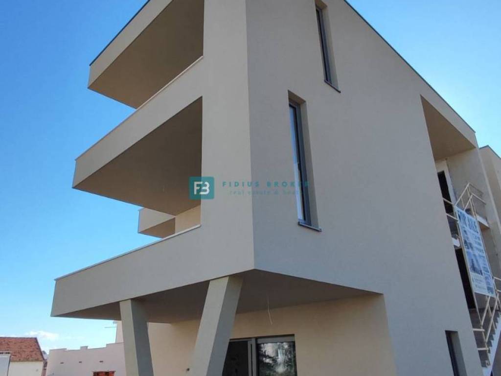 A new small residential building with a total of 4 apartments. The modern-looking residential building will consist of three floors: ground floor + 1st floor + 2nd floor. The ground floor is occupied by two apartments, and the 1st and 2nd floors are each occupied by one apartment for the entire floor of the building. The building is built with quality materials according to the latest construction standards: polystyrene facade, fire and burglar-proof entrance doors, aluminum joinery with triple-layer glass, aluminum sliding balcony doors, electric roller shutters with mosquito nets, floors covered with natural Plano stone, modern bathroom fixtures, air conditioning in the bedrooms and living room, TV connection in the bedrooms and living room, underfloor heating via heat pump, glass railings on the terraces. The building has an elevator. Apartments S1 and S2 each have one parking space within the building's courtyard, while apartments S3 and S4 each have two parking spaces. The planned completion date and move-in date is the end of 2025.