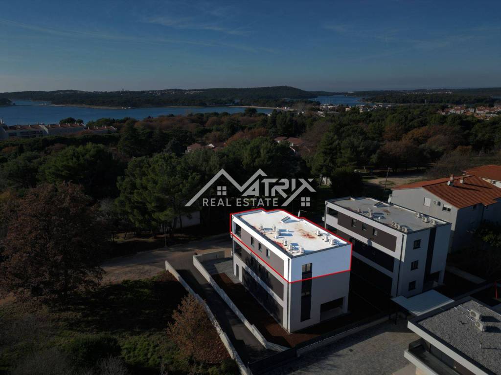 In Medulin, a sought-after coastal town known for its mild climate and beautiful beaches, a modern apartment is for sale on the 2nd floor of a smaller residential building, just 600 meters from the sea. The apartment has a net usable area of 84.18 m², and including the garage and outdoor parking space, the total area is 98.98 m².