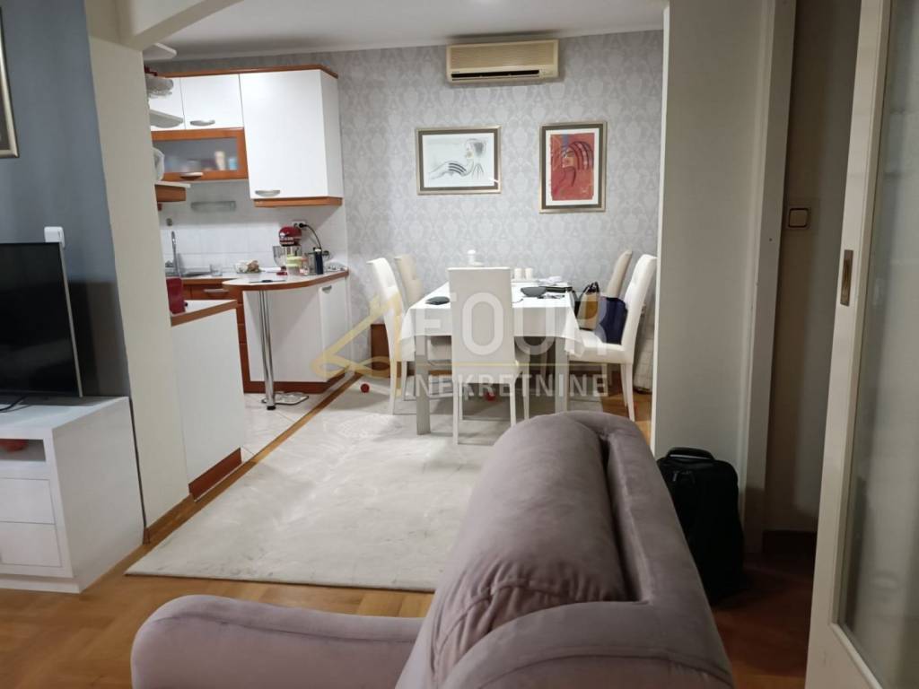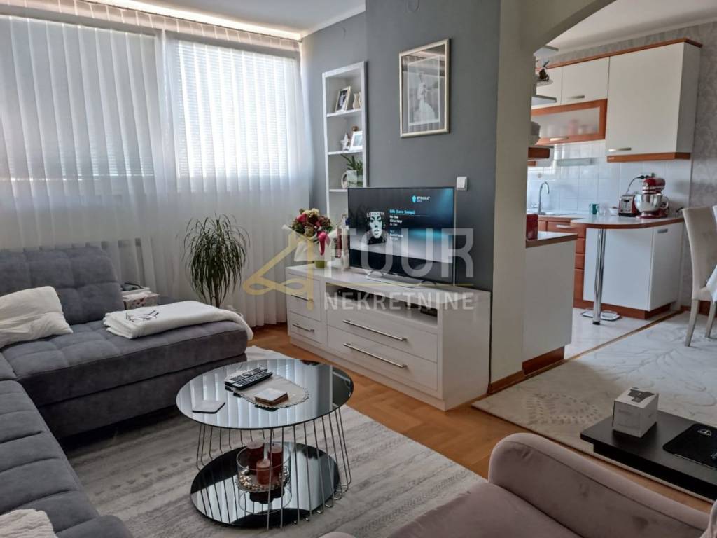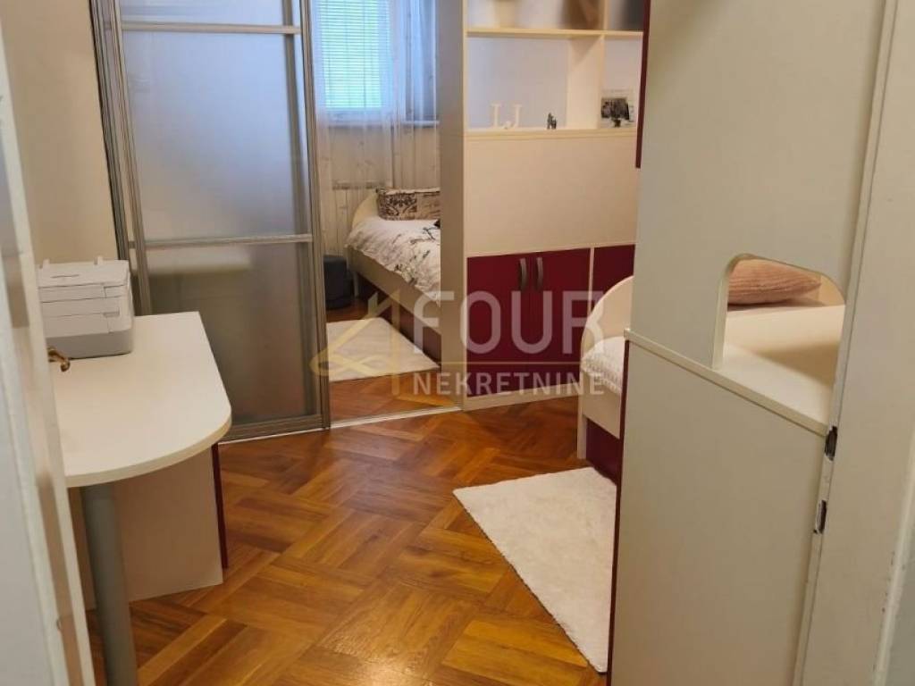 The offer includes a spacious and functional apartment located in a well-maintained residential building with an elevator. The total living area is 68.35 m2 and it is sold fully furnished and ready to move in without additional investments. It consists of an entrance hallway, a kitchen connected to the dining area, a spacious living room, a bedroom, and a children's room which is practically organized as two separate rooms with sliding doors and furniture, making it ideal for a family or home office. There is also a bathroom and a separate toilet. It also includes a storage room in the basement of 2 m2. The property was completely renovated in 2002 according to the architect's project, with all electrical, water, drainage, and gas installations changed, and the layout of the rooms completely altered. The enclosed balcony along the entire length of the apartment is legally done and integrated into the living space, resulting in a larger usable area. Additional renovations include a new bathroom from 2018, new furniture from 2019, and the installation of two new air conditioners in 2024. The apartment has central heating, PVC windows, parquet floors, and is very pleasant and bright. Nearby there are free and paid public parking, as well as all necessary amenities for daily life - shops, public transport, schools, kindergartens, and other infrastructure.