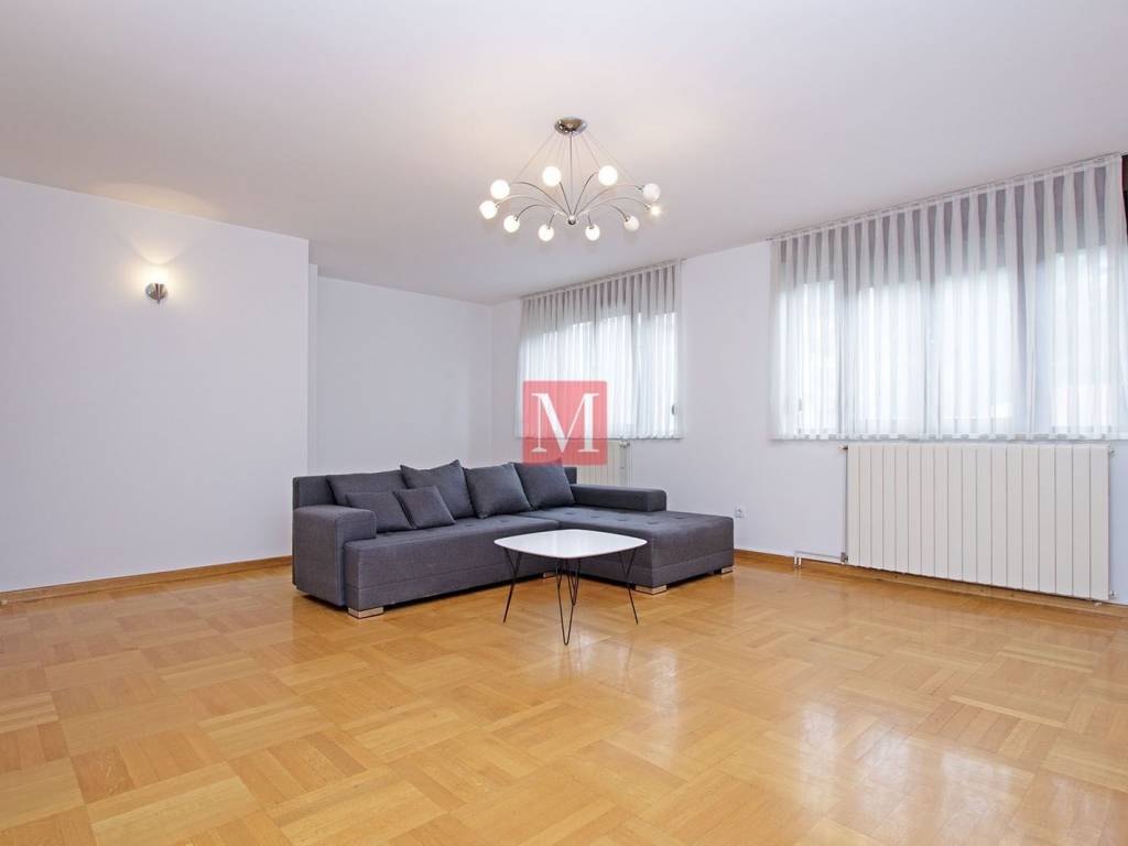 This beautiful, bright 3 bedroom apartment is located in a green oasis of Gračani. The apartment is spread over two floors and consists of 3 bedrooms, 2 bathrooms, a guest toilet, living room, dining room, kitchen and 2 terraces. The apartment comes with a garden and 3 parking spaces. It is currently semi-furnished but it can be fully furnished according to future tenants wishes and needs. Long-term lease with a mandatory deposit. Agency fee: 1 month rent + VAT.