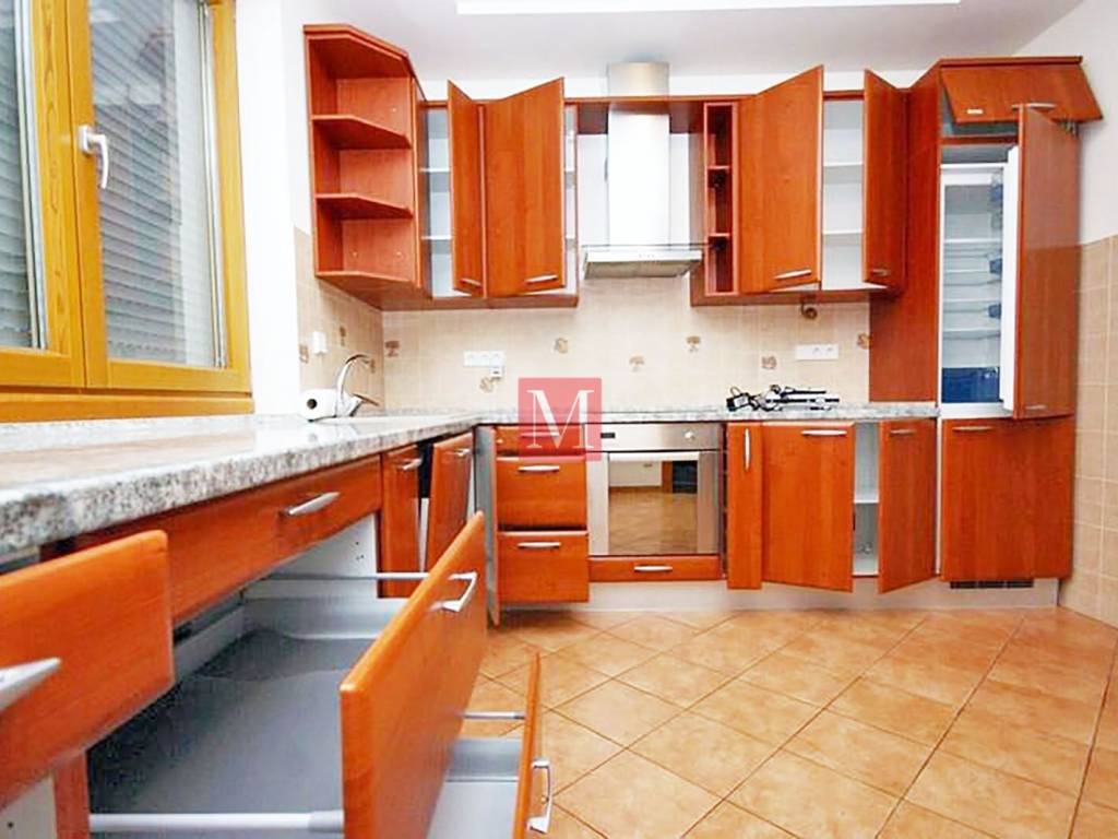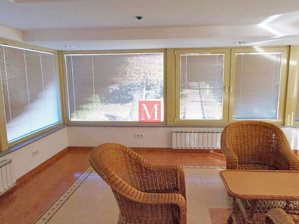Luxury detached house perfectly positioned at the area Mlinovi - few minutes walk from the public transportation, but in a quiet surroundings. The house is comprised of a nice and representative entrance atrium, big living room of 50 m2, equipped kitchen, 5 bedrooms, 6 bathrooms, winter garden, wine cellar, storage, terrace, balcony, loggia, 2 garages and addtional parking spaces in the yard. There is also a nice garden in front and courtyard.