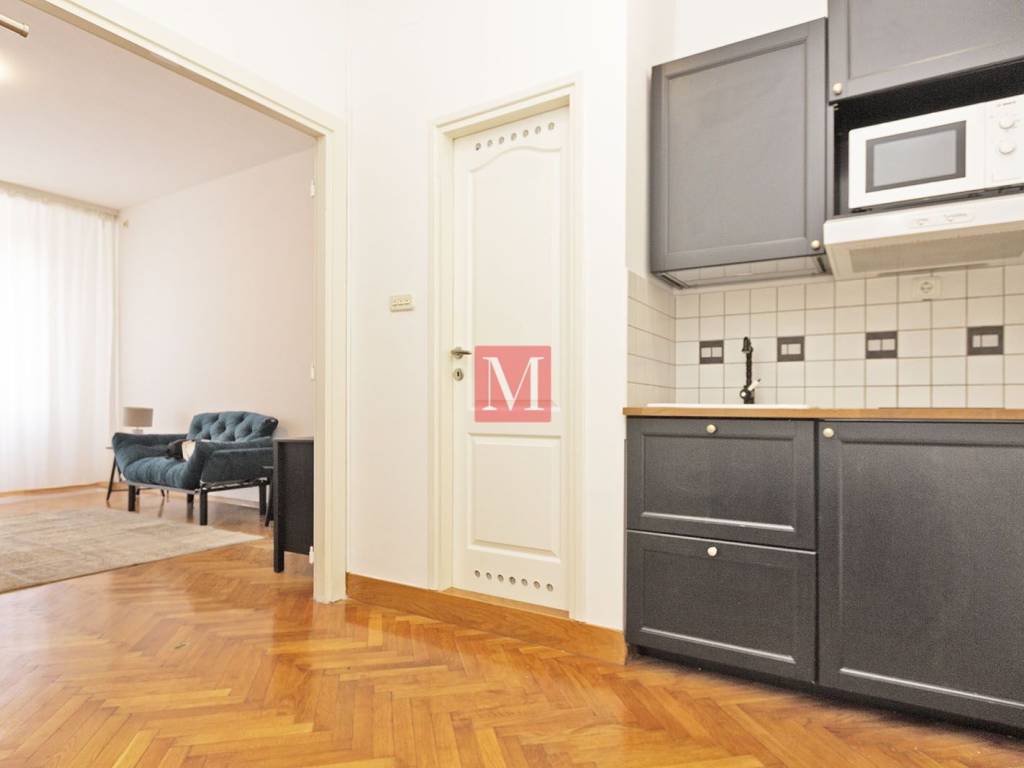 Modern newly renovated studio apartment 38m2 on the 2nd floor of an excellent and well-maintained building in Gajeva street, just a step away from Ban Jelačić Square. It consists of an entrance hall with kitchen and dining area, living / sleeping area and a bathroom. Possibility of parking in the yard. Agency fee: 1 monthly rent + VAT.