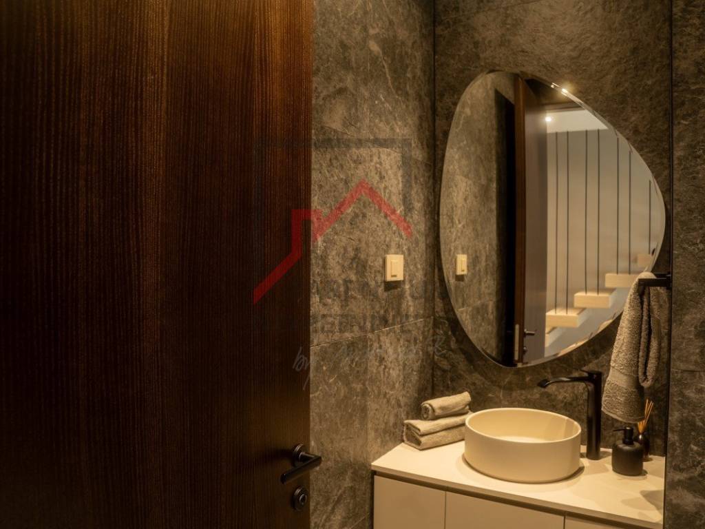 Spacious kitchen with an island by the brand Copat life and countertops made of quartz stone from the renowned brand 'Sileston', equipped with top-notch built-in appliances Miele, Liebherr, Faber, etc., refrigerator, freezer with ice maker, wine cooler.The floor consists of 3 spacious bedrooms, each with its own bathroom.The bedrooms and hallway are laid with wide-format parquet. All bedrooms are air-conditioned with Samsung windfree units and heated via built-in underfloor heating and thermostats that can be controlled via Wi-Fi. Each room features a French window from a manufacturer with integrated Guardian Sun glass (reducing heat intake and improving thermal insulation) and a mosquito net. The furniture and equipment for the bedrooms are from renowned brands Novamobili, DallAgnese, Quinti, Rotaliana.Next to the living room, there is a covered terrace of 22 m2 with a gas grill from the brand 'Fogher', alongside which is an additional spacious sink with a supplementary worktop. The furniture for the garden sets is from well-known Italian brands.