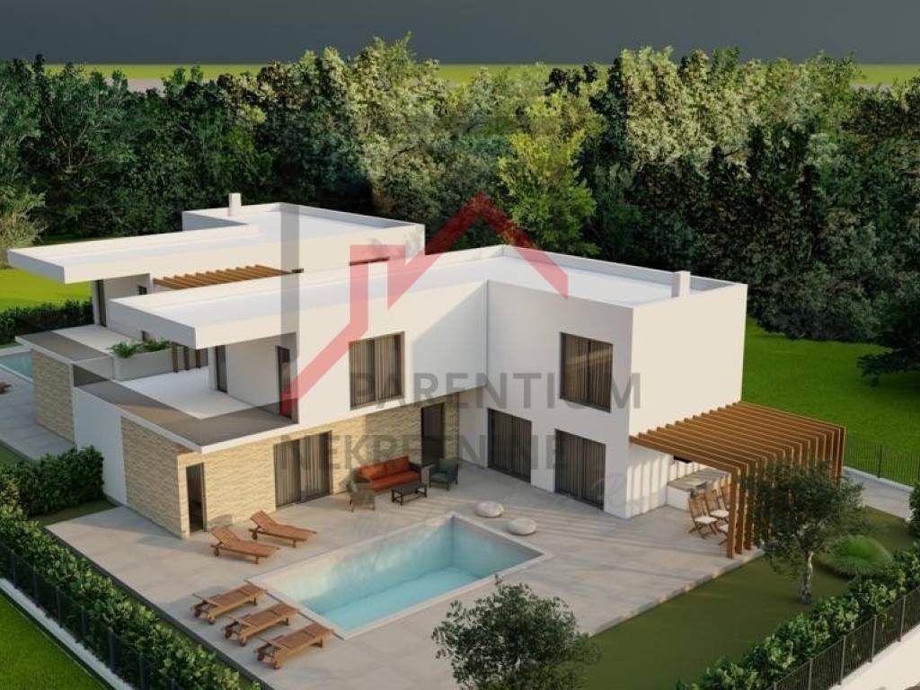 Prodaje se građevinsko zemljište površine 1144m2 na kojem je dobivena pravomoćna građevinska dozvola za izgradnju samostojeće obiteljske stambene zgrade ( P+1), s dvije stambene jedinice i pomoćnom građevinom ( bazen).