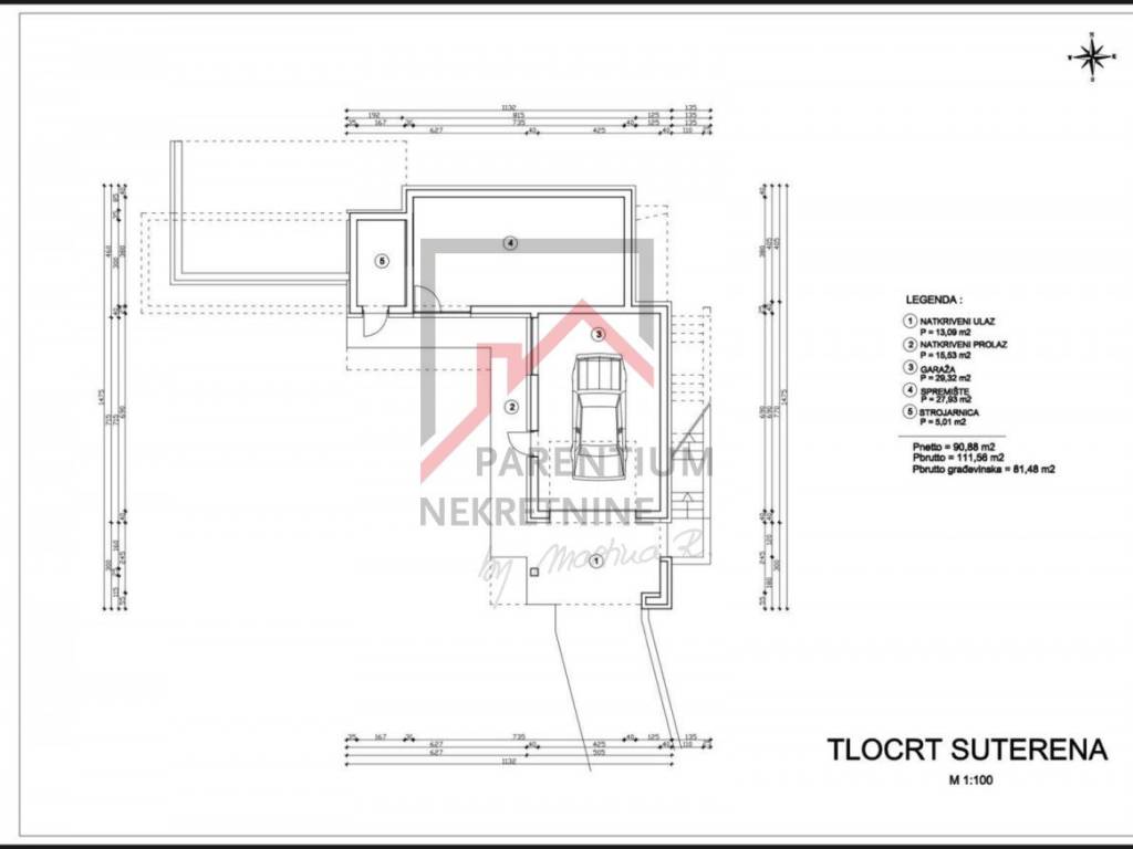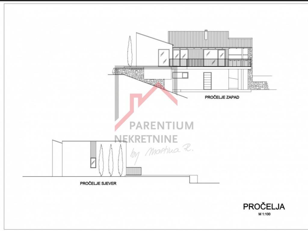 Projekt predviđa modernu obiteljsku kuću promišljeno raspoređenu na dvije etaže. U prizemnom dijelu planirana je garaža, spremište, ostava i ulazni prostor, dok je na katu predviđen otvoren i svijetao dnevni boravak spojen s kuhinjom i blagovaonicom, jedna spavaća soba, kupaonica, prostorija predviđena za praonicu te natkrivena terasa s koje se izlazi na bazen smješten u nastavku kuće. Kuća je osmišljena kao funkcionalan dom i istovremeno kao idealna kuća za odmor, s naglaskom na udobnost, privatnost i sklad s prirodnim okruženjem.