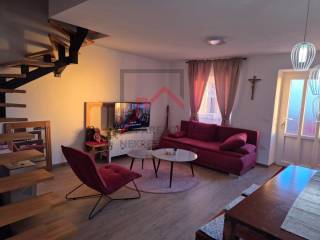 The stone house is spread over three floors, on the ground floor there is a living room with a kitchen and a bathroom. The living room opens onto a fenced yard of about 60 m2. On the first floor there are two bedrooms and a bathroom, on the second floor there is another bedroom with access to an uncovered terrace with a beautiful sea view, and another bathroom.